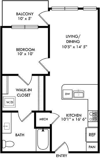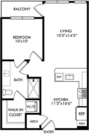 Studio, 1 Bath, 571-611 sq ftAvailable NowModel Gallery
