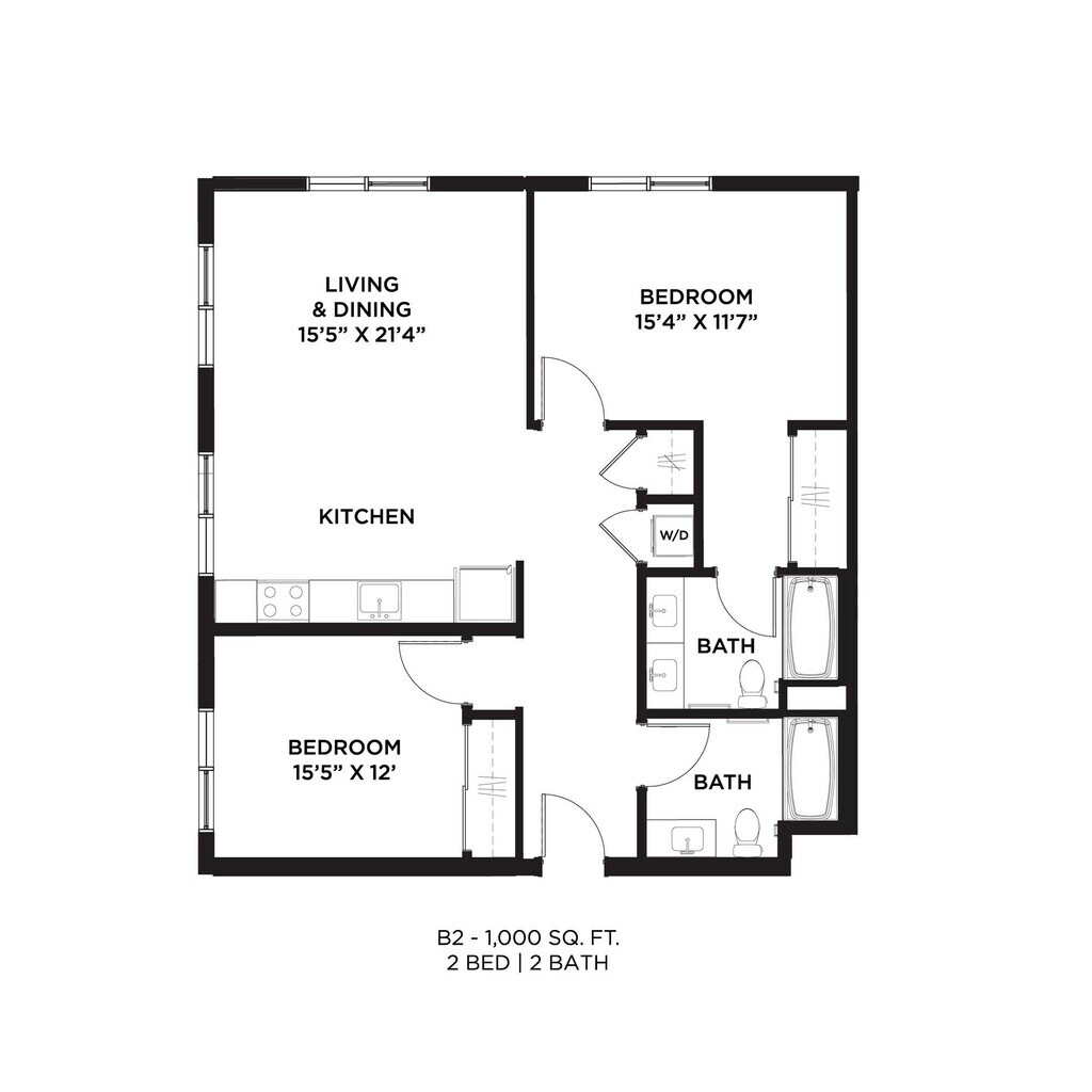2 Beds, 2 Baths, 1000 sq ftAvailable NowModel Gallery