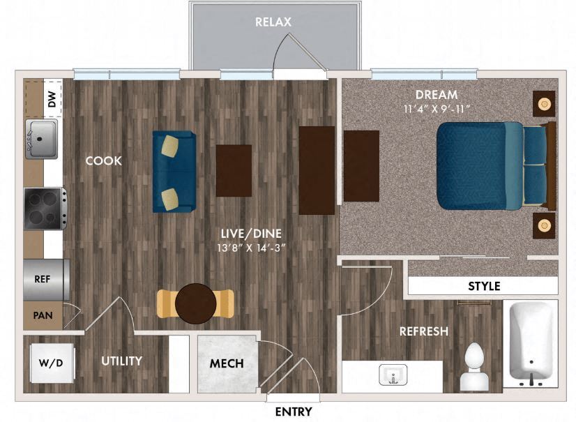 Studio, 1 Bath, 840 sq ftAvailable NowModel Gallery