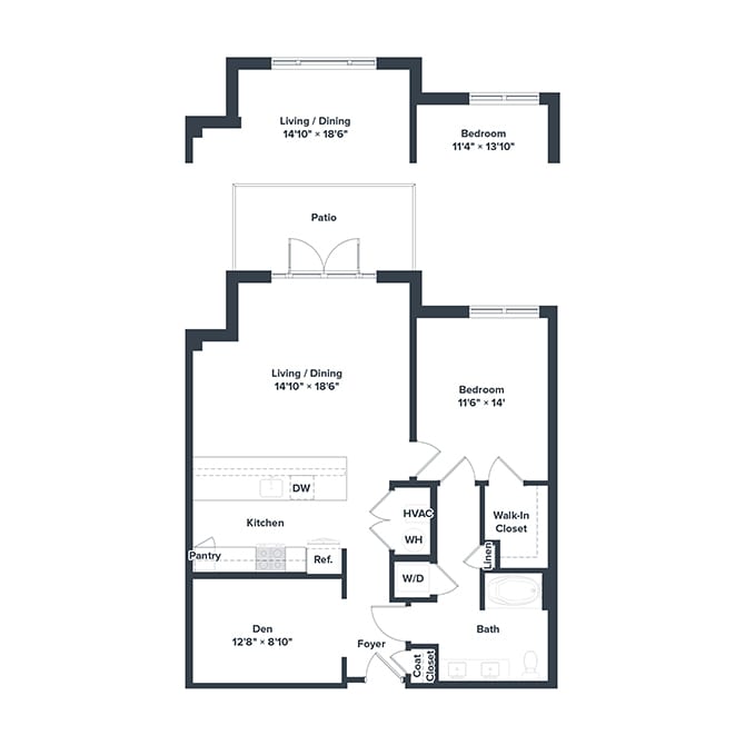 2 Beds, 2 Baths, 1137 sq ftAvailable NowModel Gallery