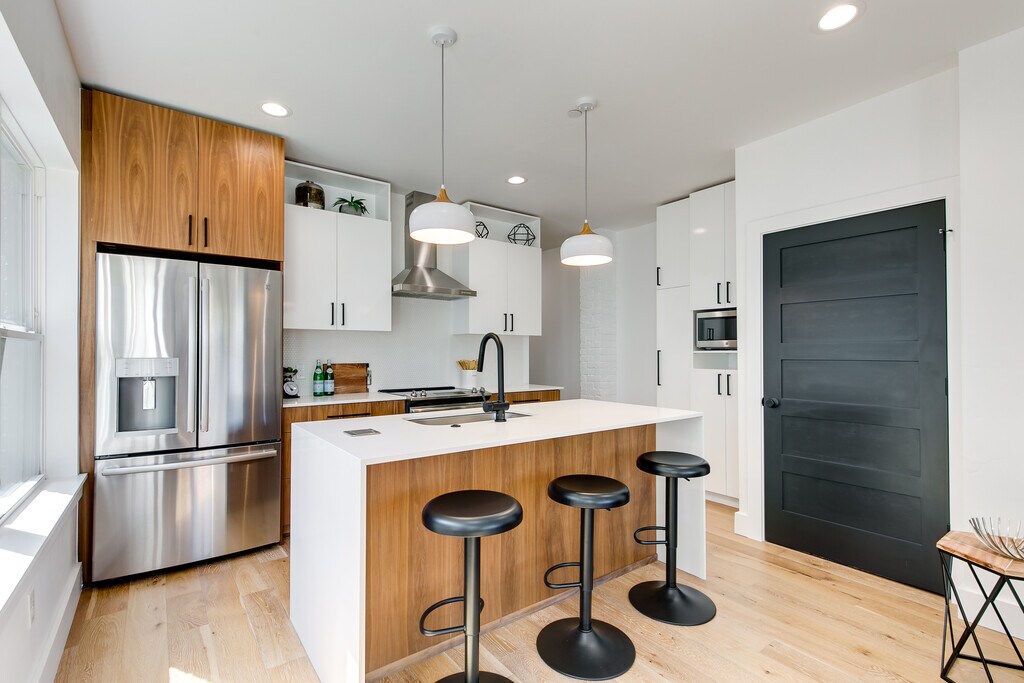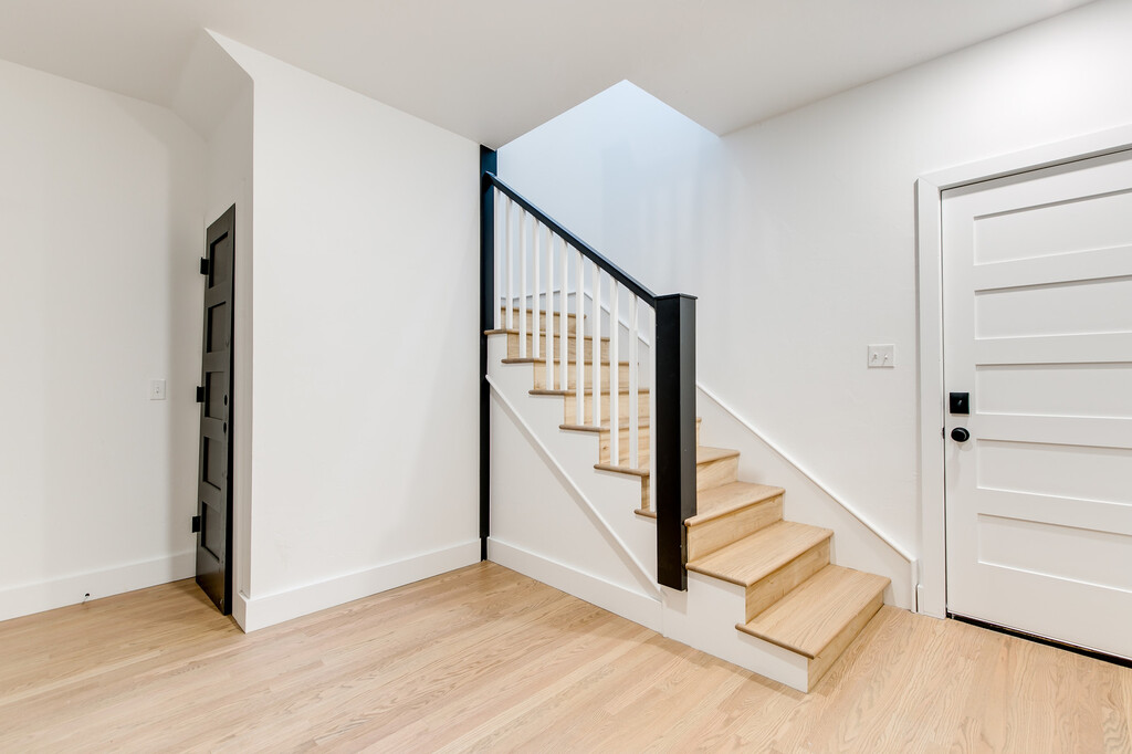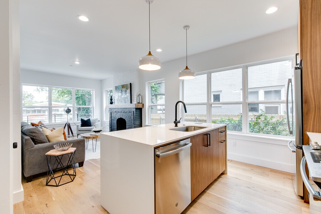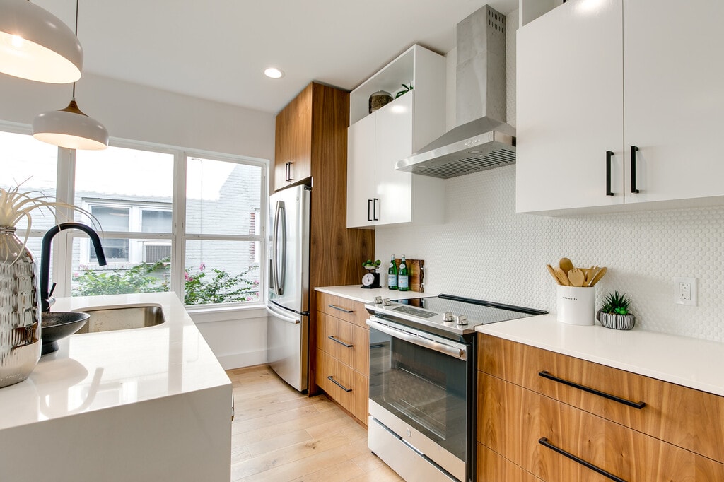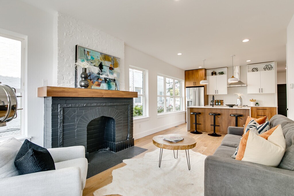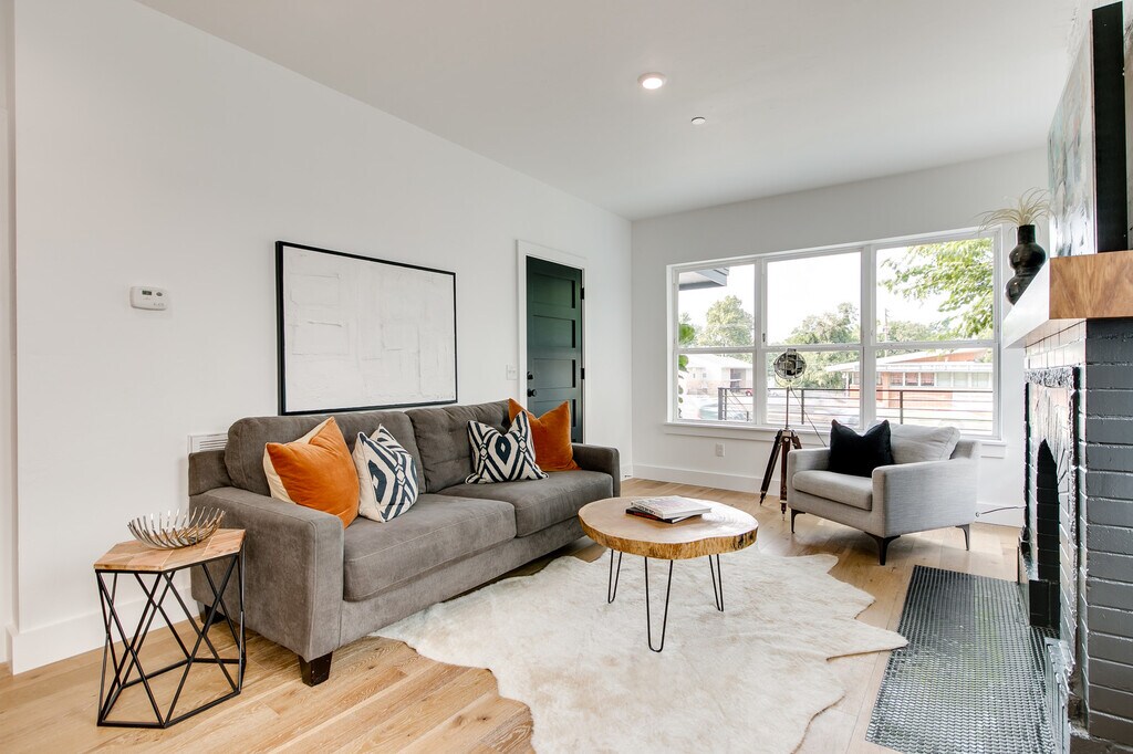 Come home to white oak floors, clean white walls with black contrasting doors and brand new appliances. Newly renovated, the living area features the original fireplace with a black penny tile accent. The kitchen is bright and modern with walnut cabinetry, quartz counter tops, white penny tile backslash and custom light fixtures! The bedroom is framed with large windows and has a huge walk-in closet. There is covered parking and a private courtyard in the back. Immediate move-in available!