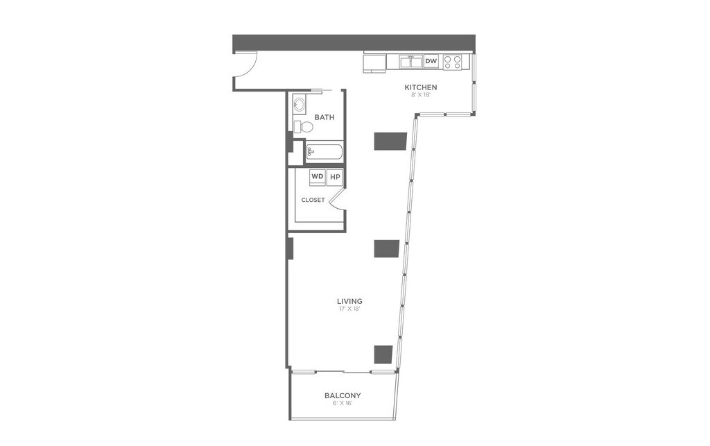 Studio, 1 Bath, 830 sq ftLargest StudioThis is the largest Studio at this PropertyModel Gallery
