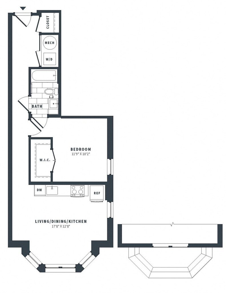 1D-C - Floorplan 1D-C - Video Apartment Unit: 512Apartment Model: 1D-C$2,4651 Bedroom, 1 Bath, 747 sq ftAvailable May 7, 2026Apartment Unit: 608Apartment Model: 1 Bed, 1 bath$2,4661 Bedroom, 1 Bath, 735 sq ftAvailable Now1D-E
