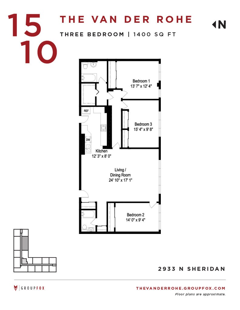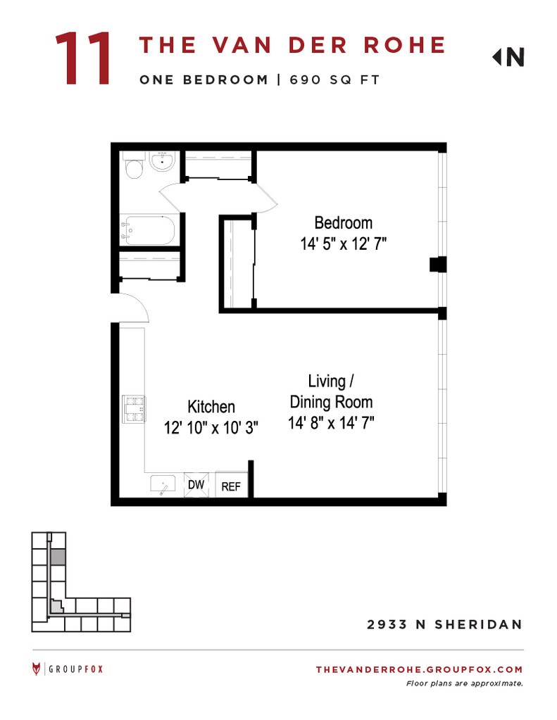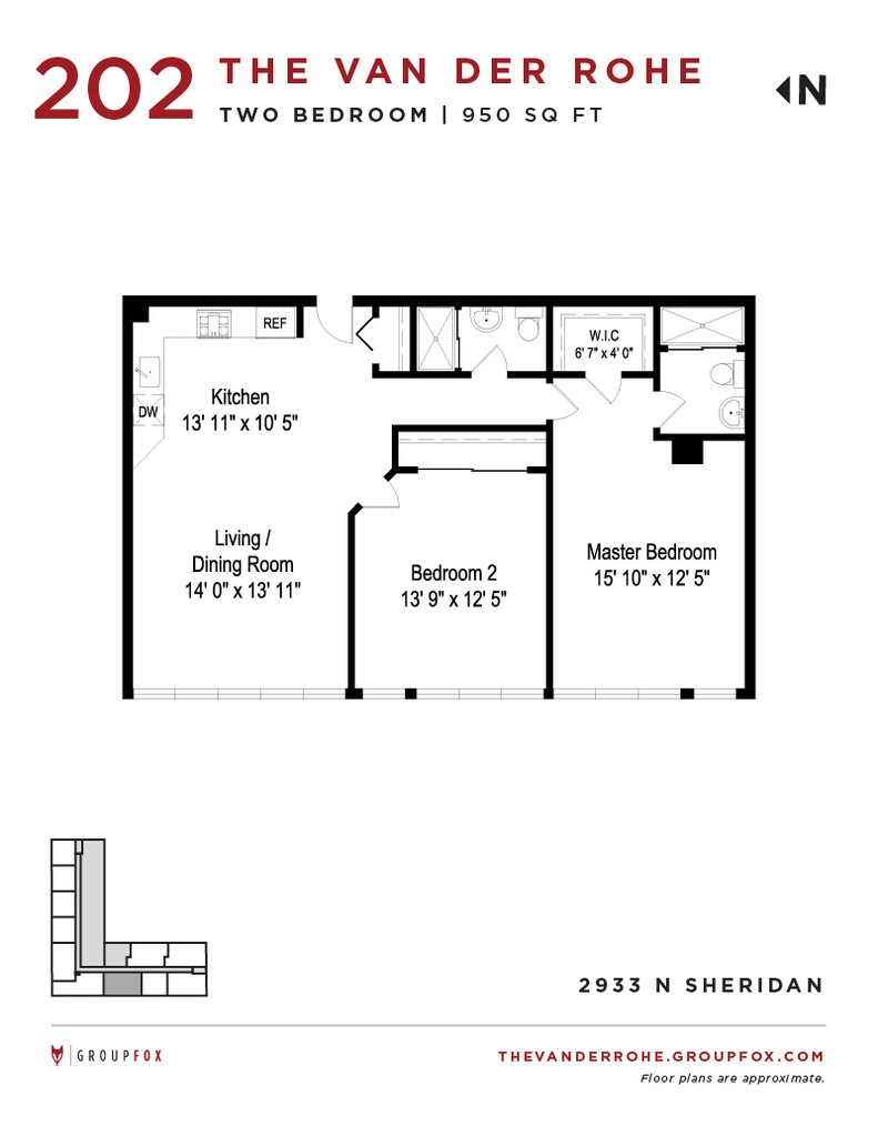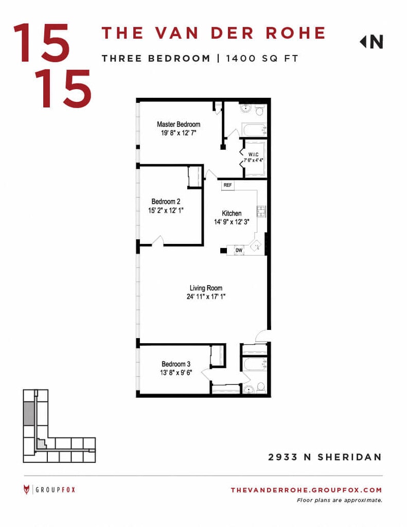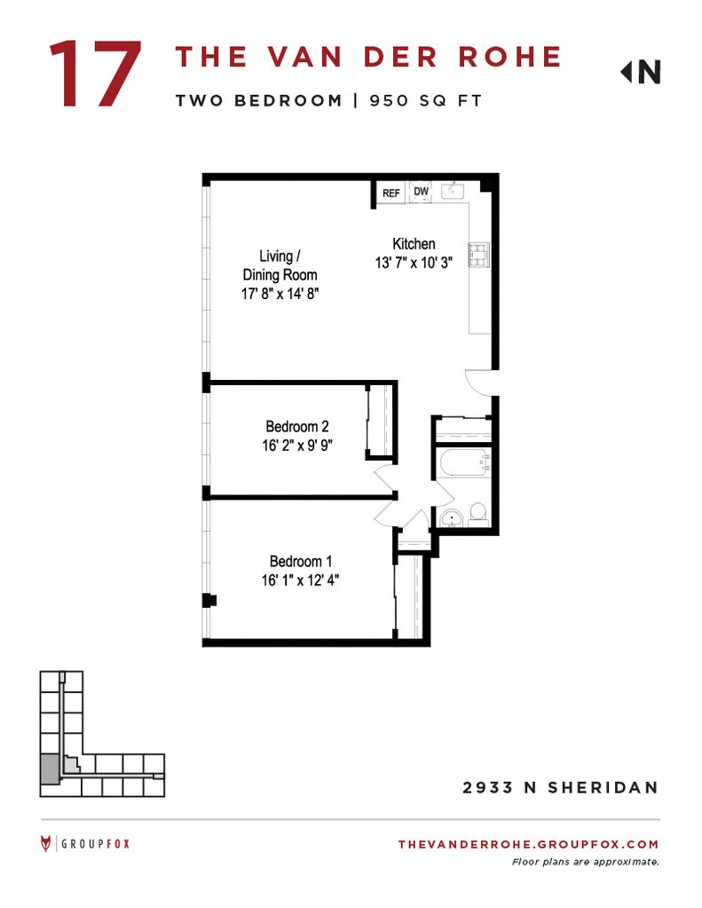 The Van der Rohe is located at 2933 N Sheridan Rd near the Lakeview area of Chicago, IL