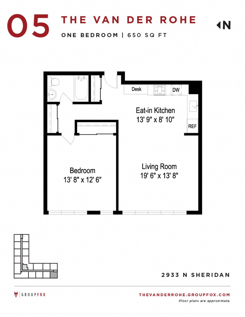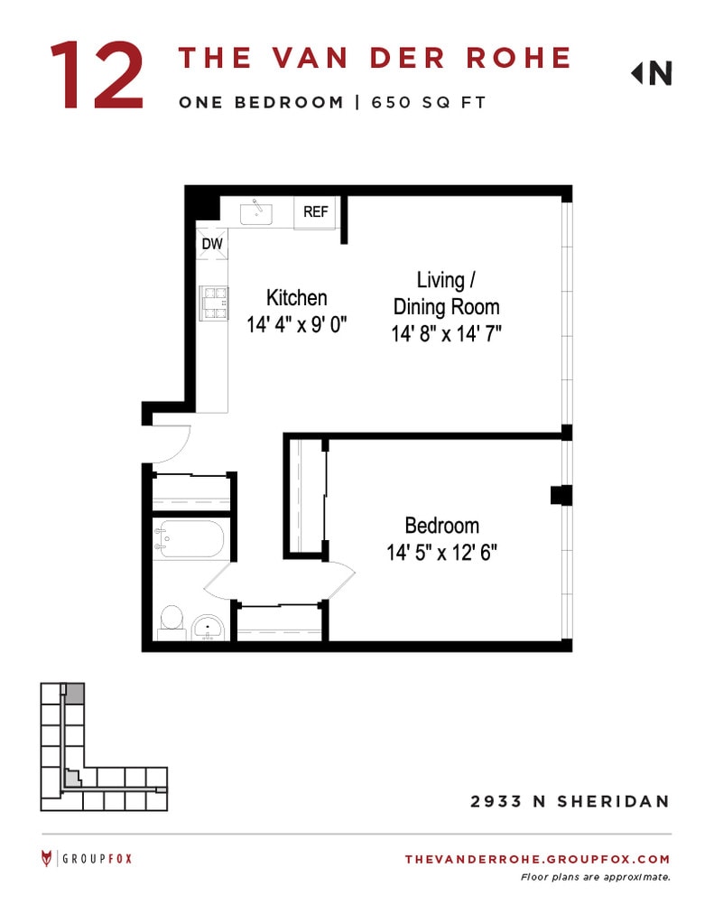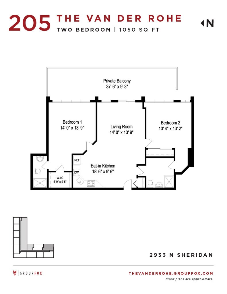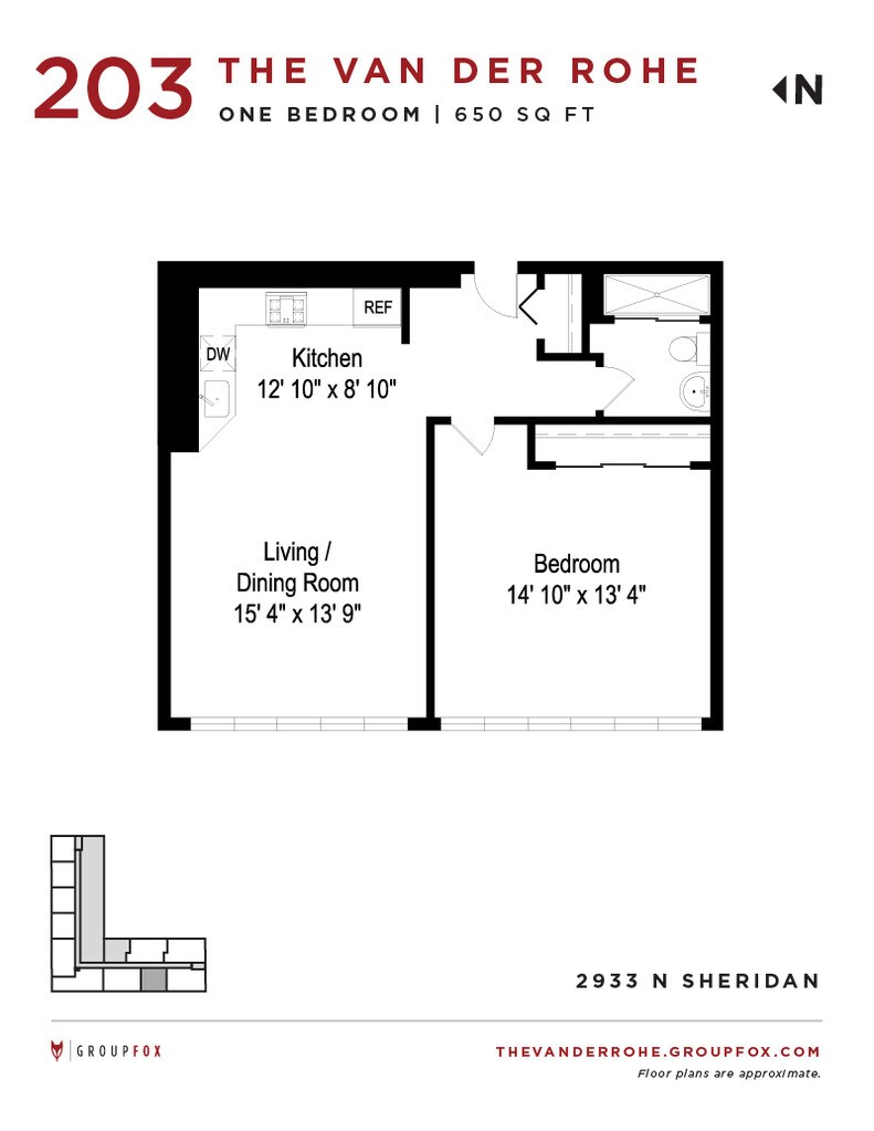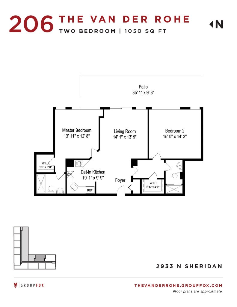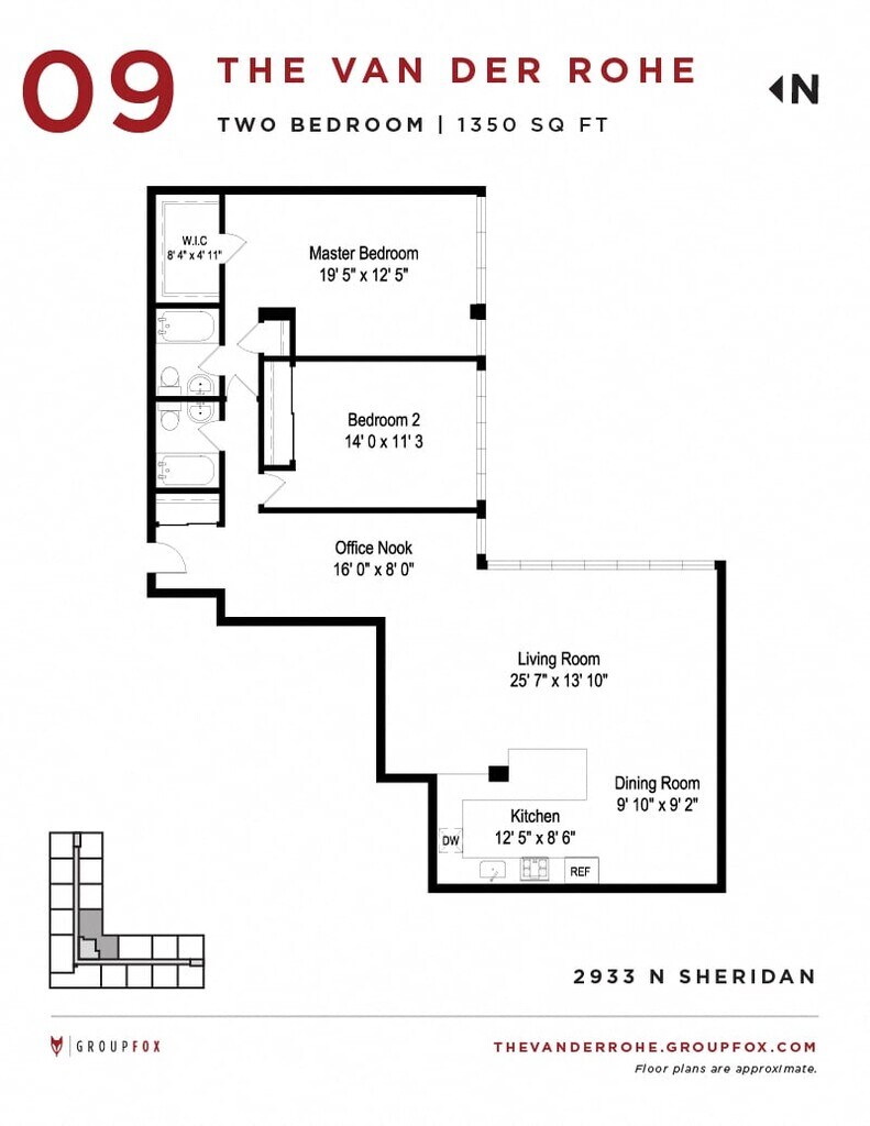 The Van der Rohe is located at 2933 N Sheridan Rd near the Lakeview area of Chicago, IL