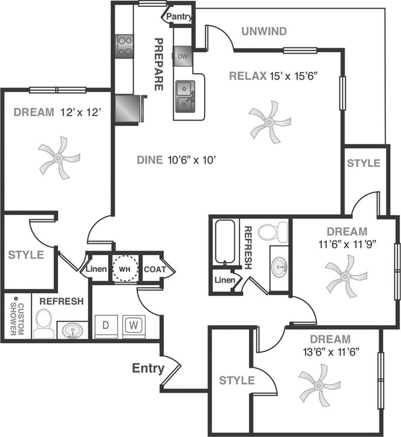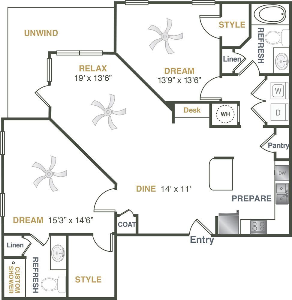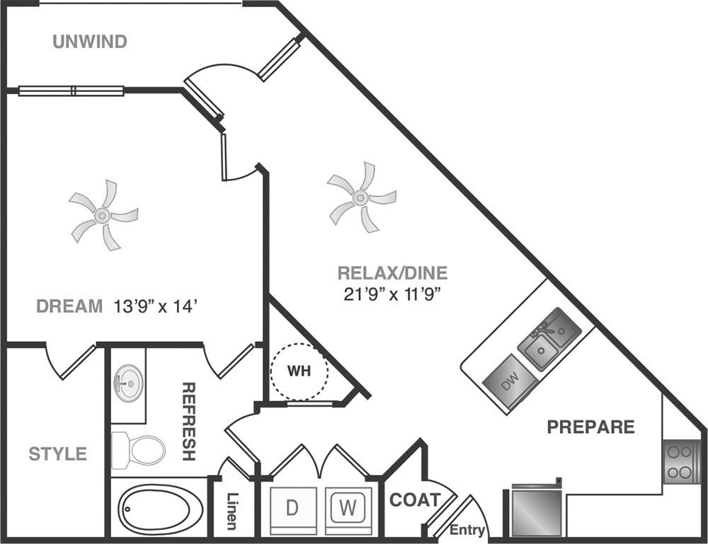 A3D - Floorplan 1 Apartment Unit: 600-6203Apartment Model: A3D$1,7651 Bedroom, 1 Bath, 768 sq ftAvailable November 29, 2025Floorplan A3C