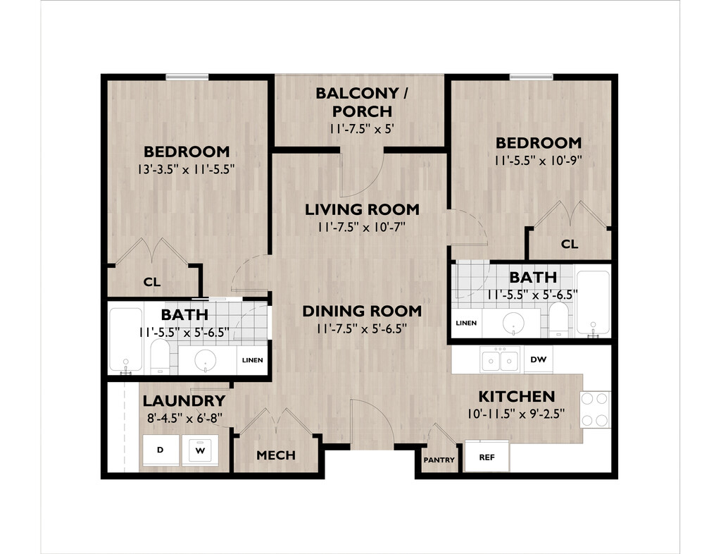 Apartment Model: Two-Bedroom$1,3752 Bedroom, 2 Bath, 903 sq ftAvailable Now![]()