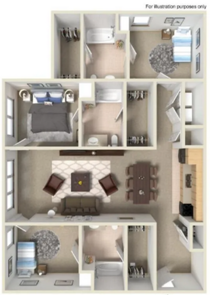 3 Beds, 3 Baths, 1356 sq ftAvailable August 19, 2026Largest 3 BedroomThis is the largest 3 Bedroom at this PropertyModel Gallery