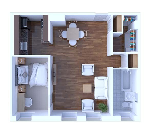 1 Bed, 1 Bath, 420 sq ftAvailable NowModel Gallery