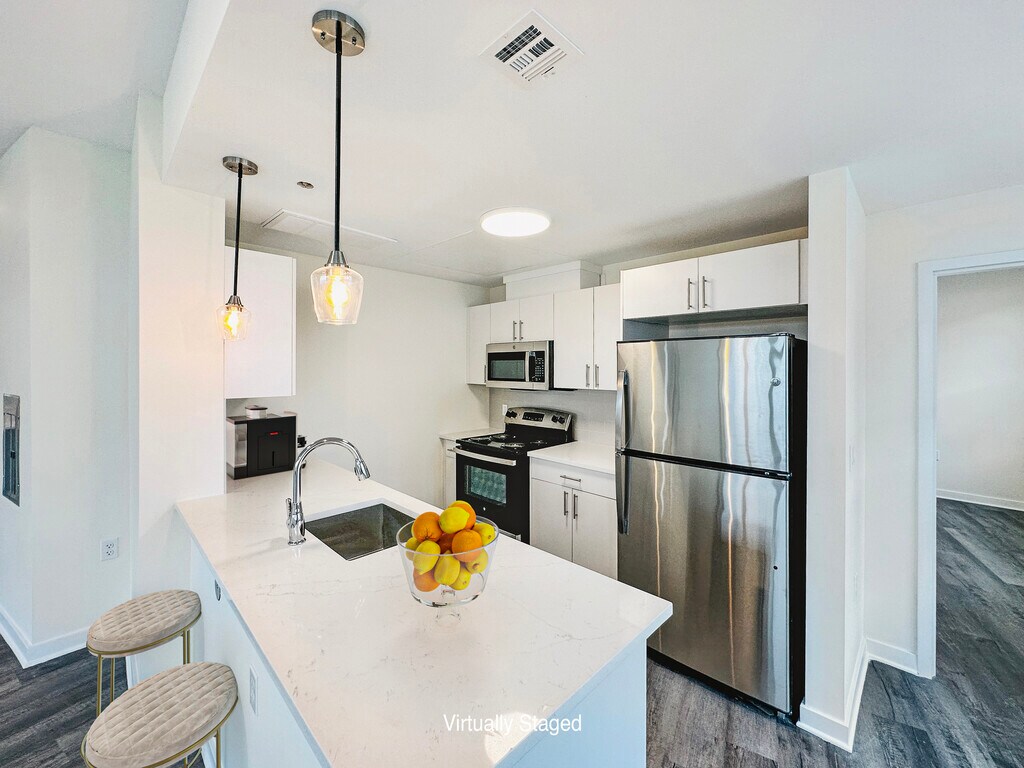 1 and 2 Bedroom Open Living Space Offering, Recessed LED Lighting, Quartz Counters, Large Style Picture Windows Capturing Natural Lighting. Peninsula Layout available. Washer and Dryer Conveniently Within Each Apartment. Garage Parking Available. We Are Located On West Main Street in The Heart of Bound Brook Surrounded By Major Shops and Across Street fromTran Station for all you Commuters. EV Charging Available.