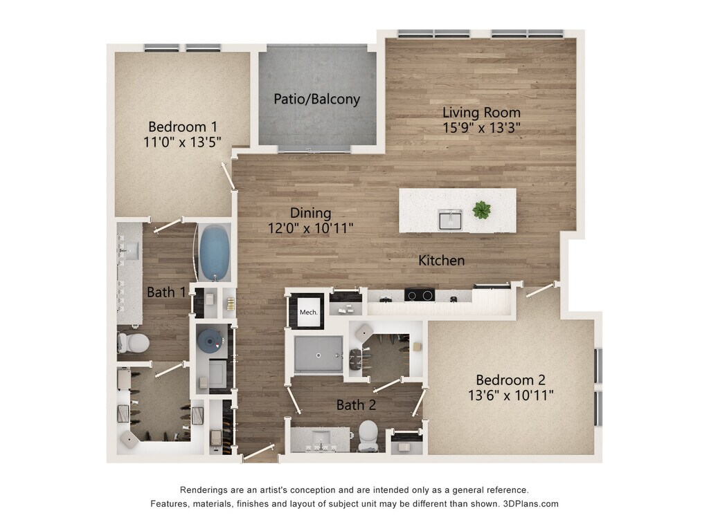 Apartment Model: Henderson Alt.22 Bedroom, 2 Bath, 1219 sq ftUnavailable![]()