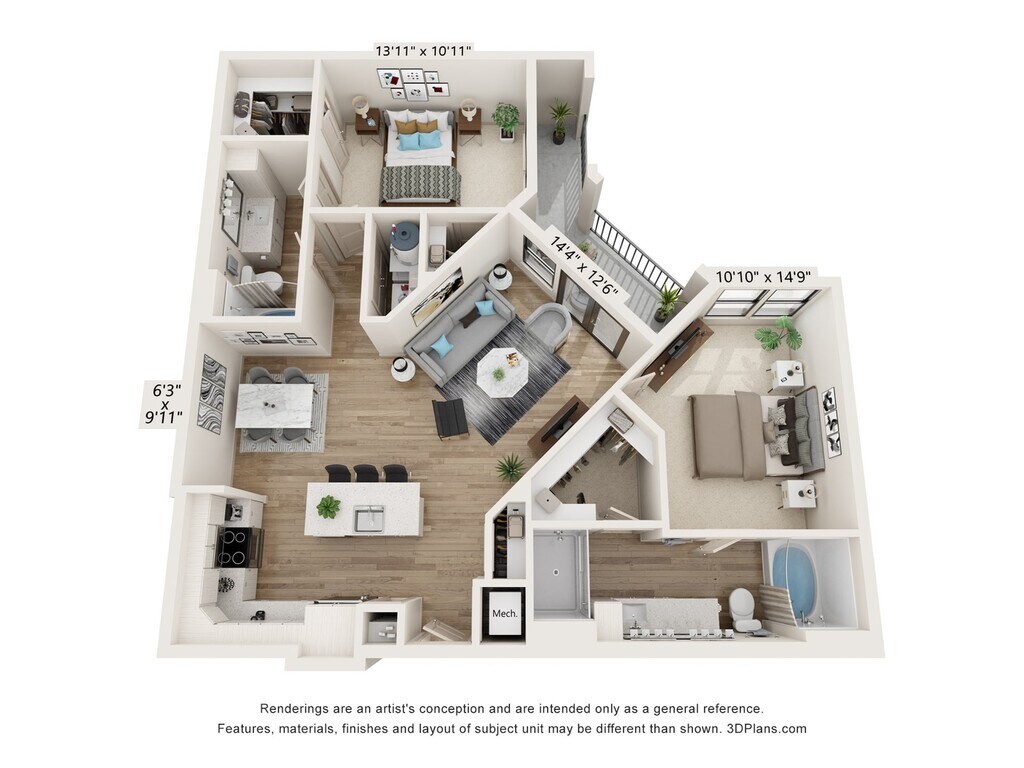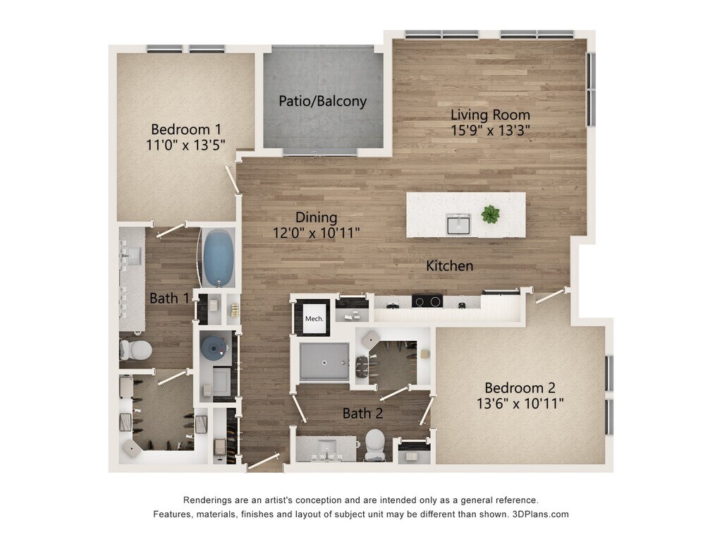 Apartment Model: Henderson.alt1 - H2 Bedroom, 2 Bath, 1219 sq ftUnavailable![]()