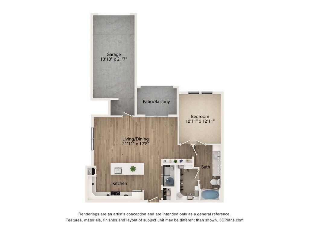 1 Bed, 1 Bath, 584 sq ftModel Gallery