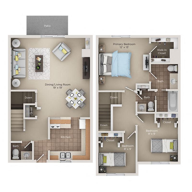 The View Apartments and Townhomes offers 1 to 3 Bedroom apartments starting from $979 and having 714–1,230 sq ft. Here is the current pricing and availability: