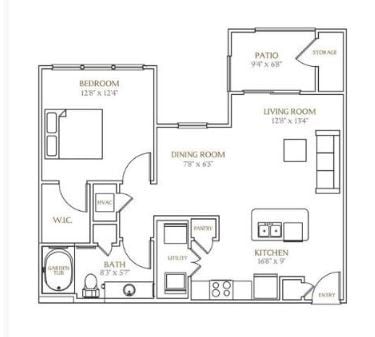 1 Bed, 1 Bath, 625 sq ftAvailable NowModel Gallery