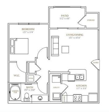 Apartment Model: Olive$1,1141 Bedroom, 1 Bath, 530 sq ftAvailable Now![]()