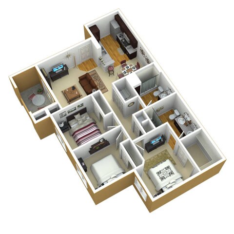 3 Beds, 2 Baths, 1227 sq ftPlus FeesAvailable NowModel Gallery