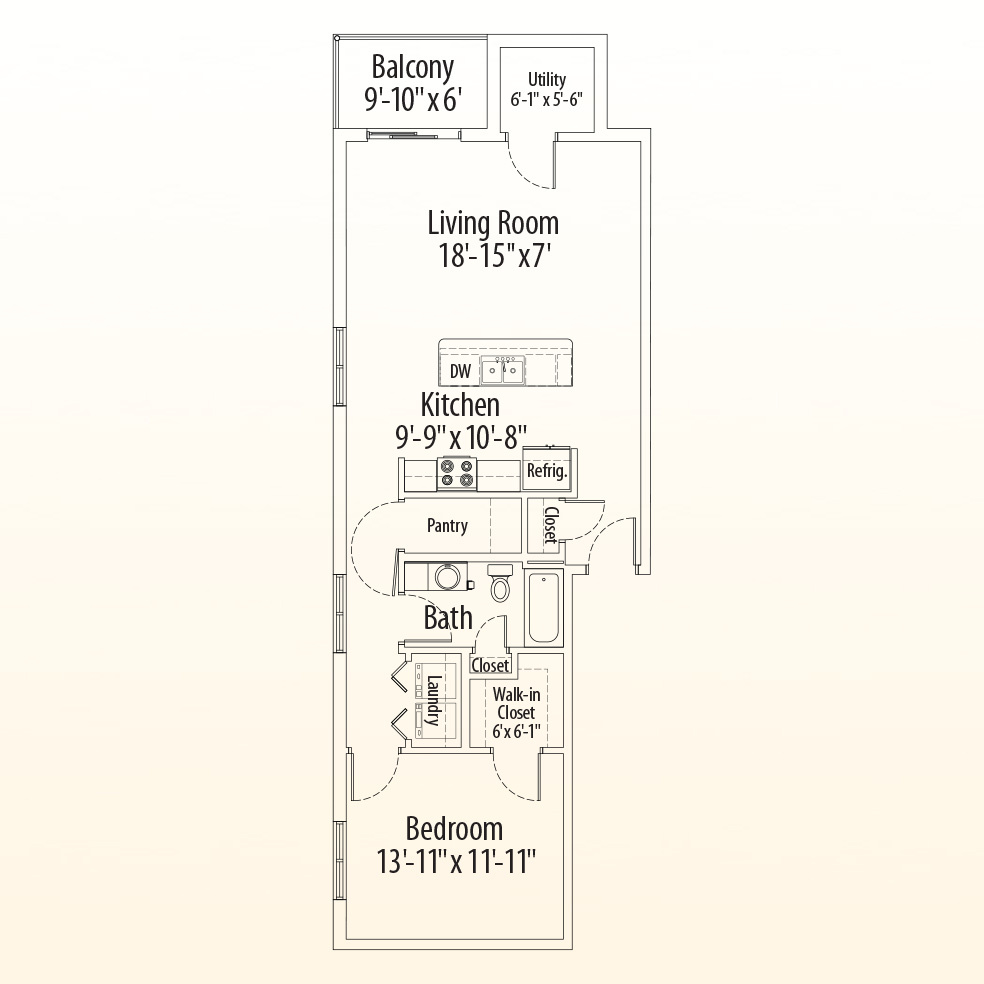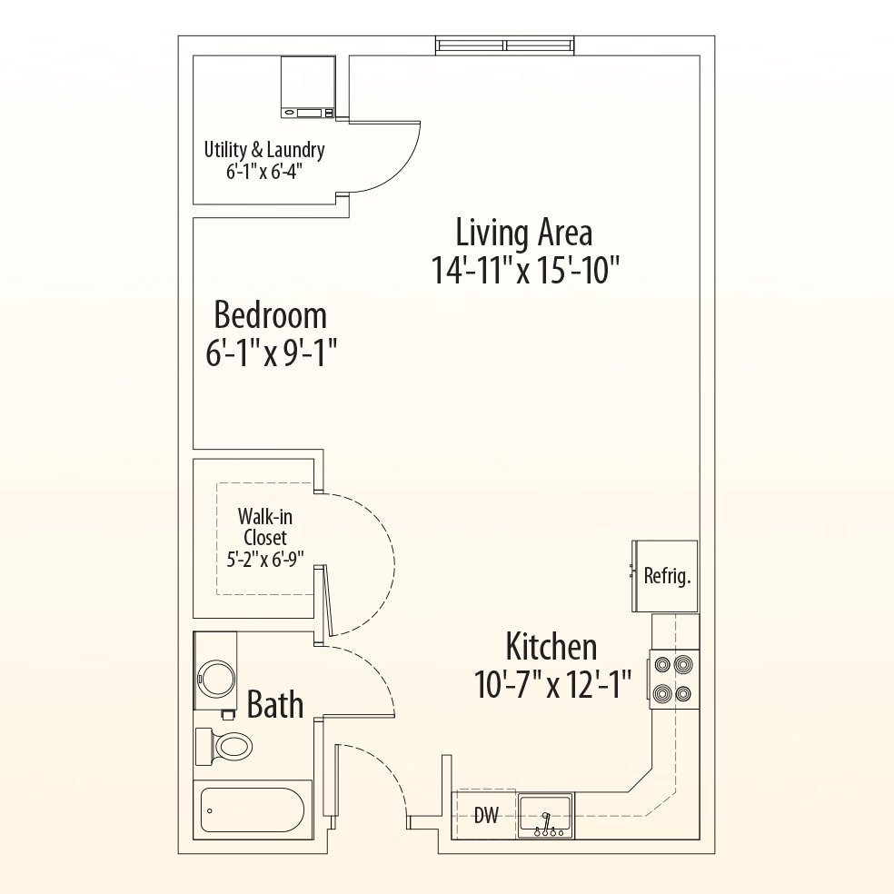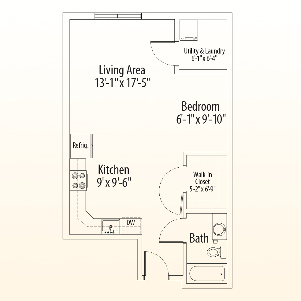 Studio, 1 Bath, 594-611 sq ftModel Gallery
