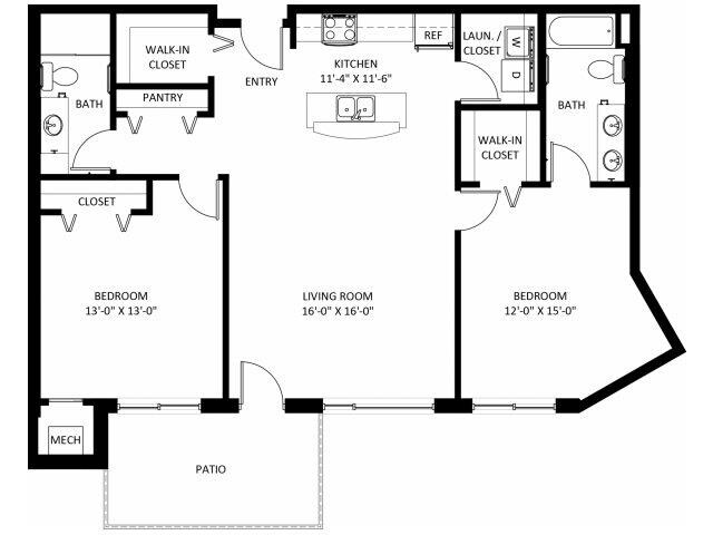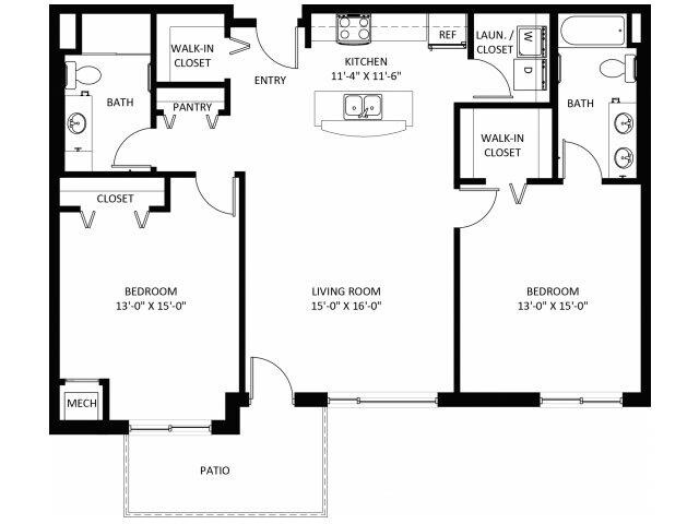 Apartment Model: Stinson2 Bedroom, 2 Bath, 1287 sq ftUnavailable![]()