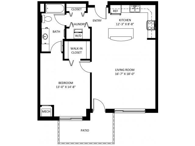 1 Bed, 1 Bath, 1006 sq ftLargest 1 BedroomThis is the largest 1 Bedroom at this PropertyModel Gallery