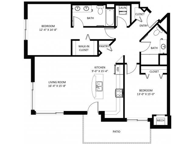 2 Beds, 2 Baths, 1287 sq ftLargest 2 BedroomThis is the largest 2 Bedroom at this PropertyModel Gallery