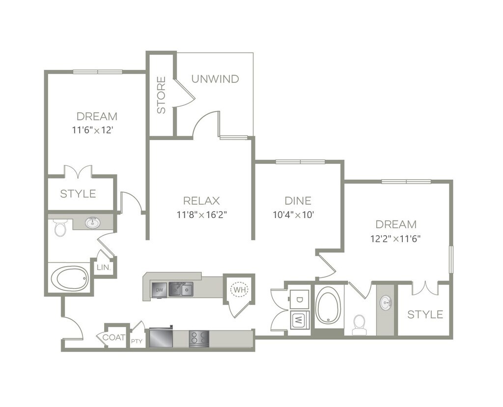 2 Beds, 2 Baths, 1176 sq ftLargest 2 BedroomThis is the largest 2 Bedroom at this PropertyModel Gallery