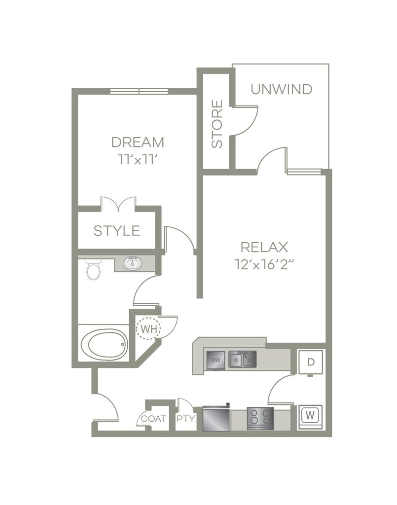 1 Bed, 1 Bath, 700 sq ftAvailable NowModel Gallery