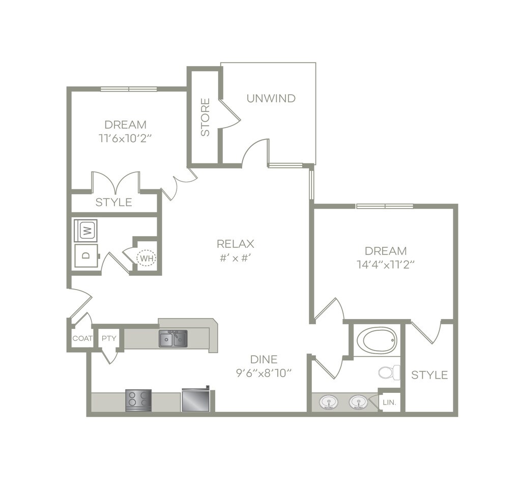 2 Beds, 2 Baths, 1140 sq ftAvailable NowModel Gallery