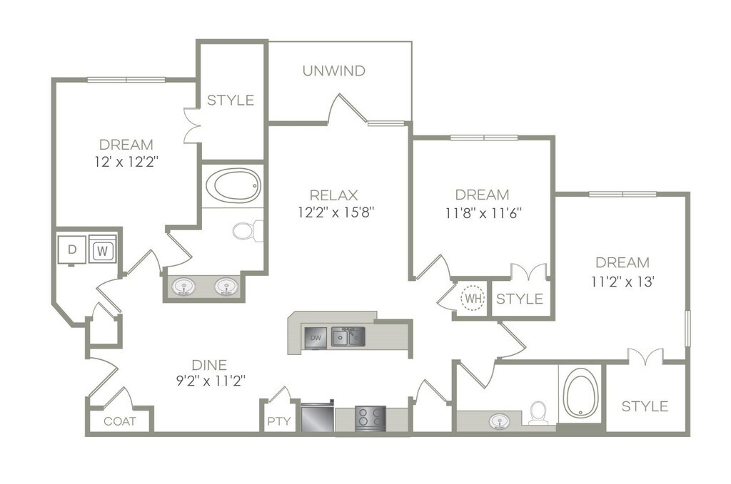 Apartment Model: 3 Bed, 2 Bath Phase 1Call For Rates3 Bedroom, 2 Bath, 1387 sq ftUnavailable3 Bed, 2 Bath Phase 1 - Floorplan 1
