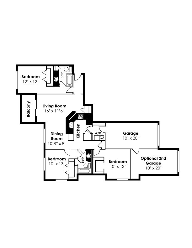 One Bedroom One Bath 1A - Floorplan 2 One Bedroom One Bath 1B