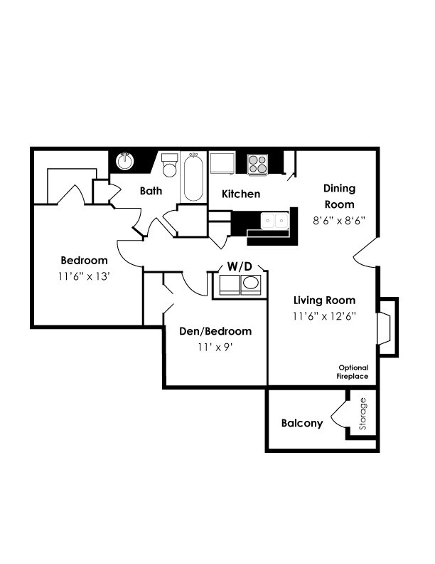 One Bedroom One Bath w/ Den - Floorplan 1 ![]()