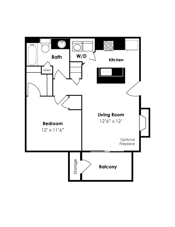 One Bedroom One Bath 1A - Floorplan 1 ![]()
