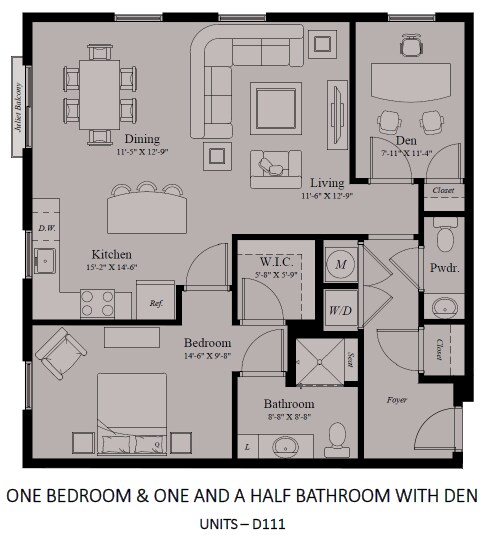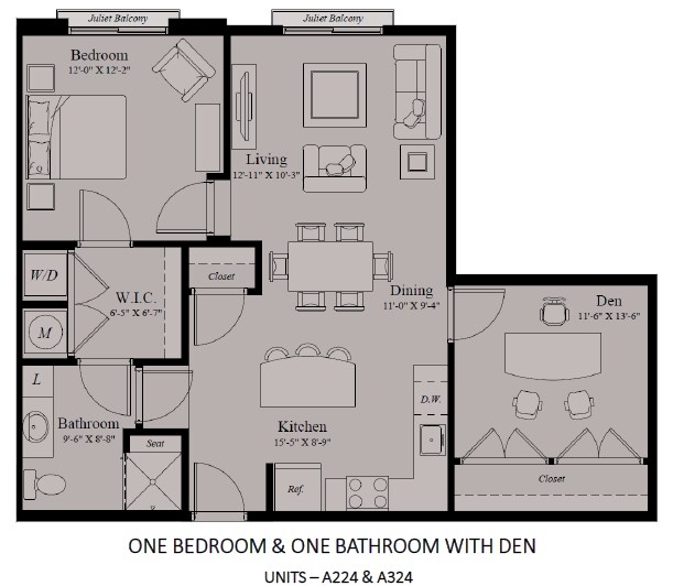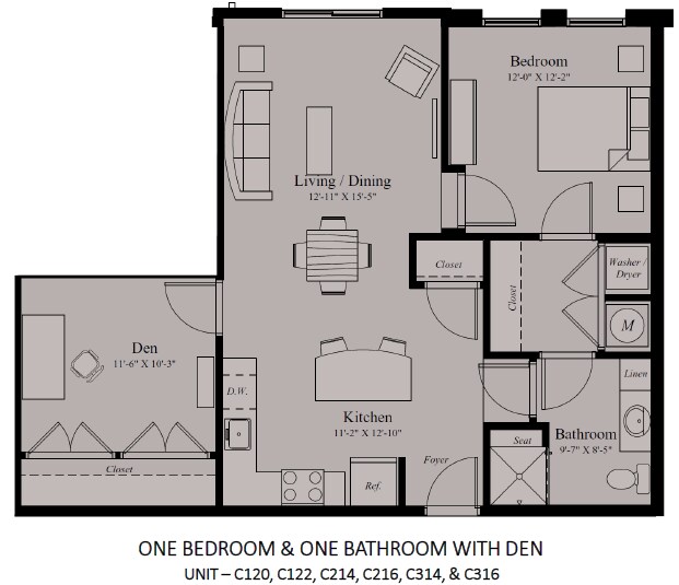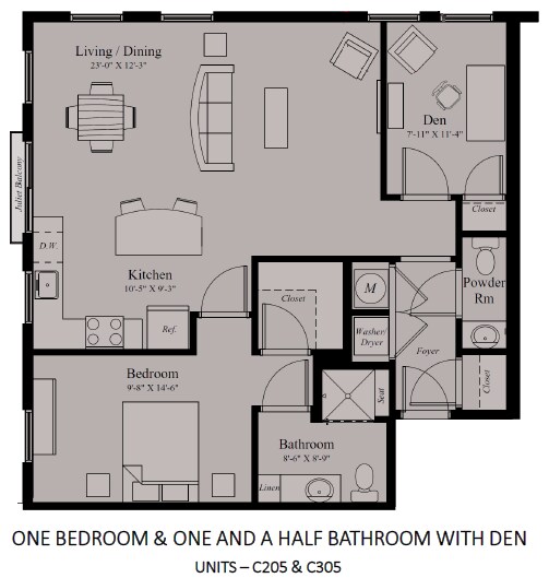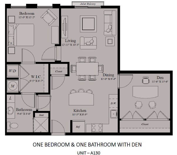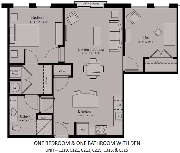 1 BR 1 BA with Den - Floorplan 4 ![]()