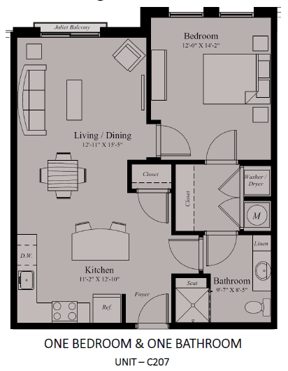 1 Bedroom, 1 Bath - Floorplan 7 ![]()