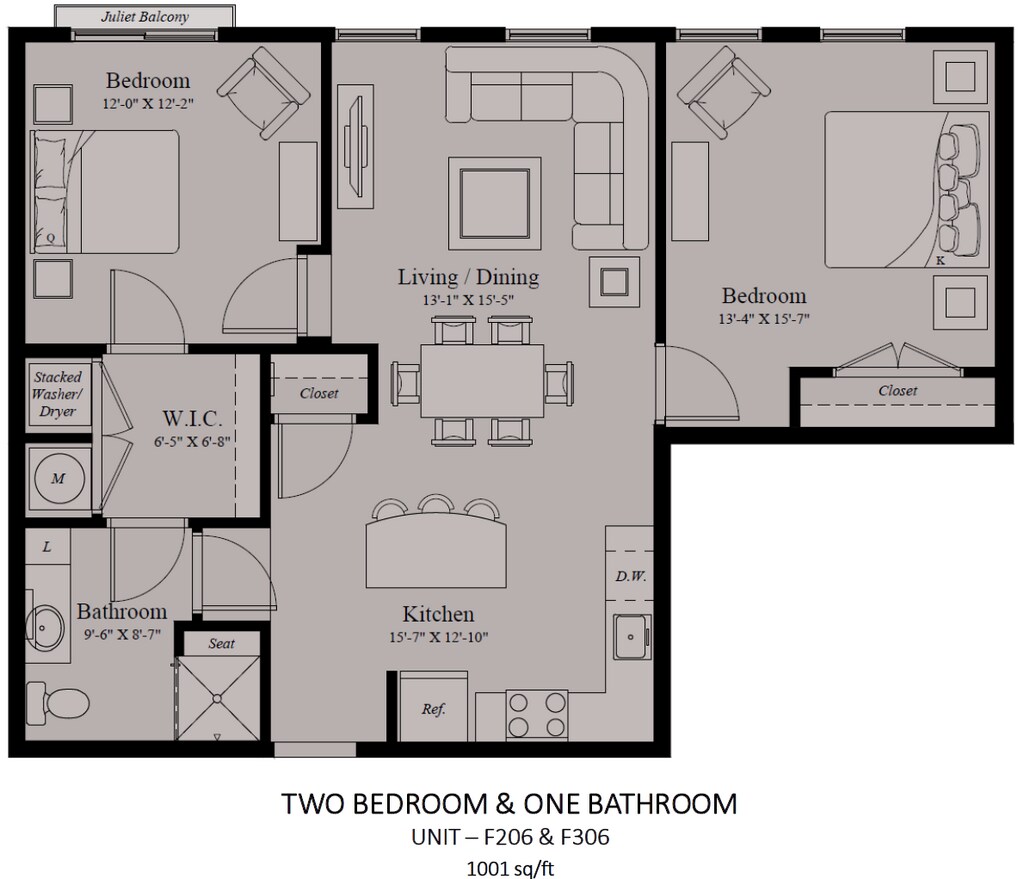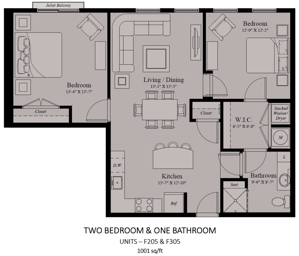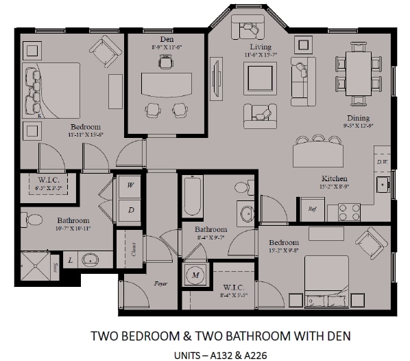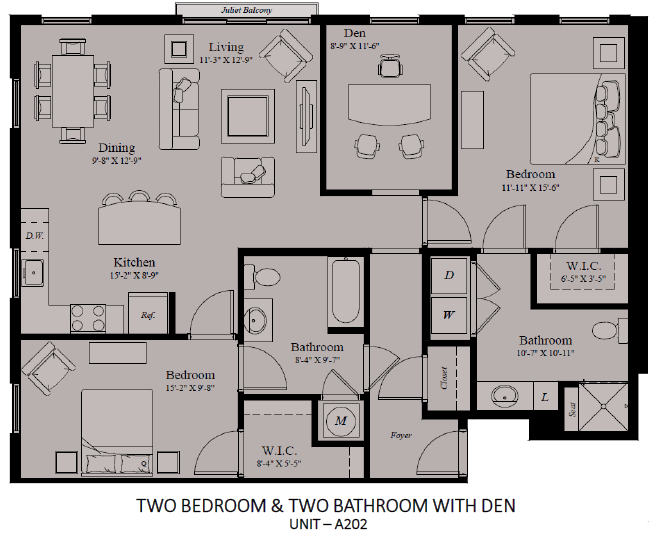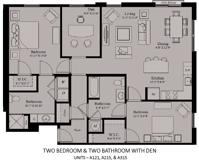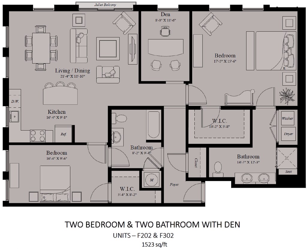 1 BR 1 BA with Den - Floorplan 5 2 Bedrooms