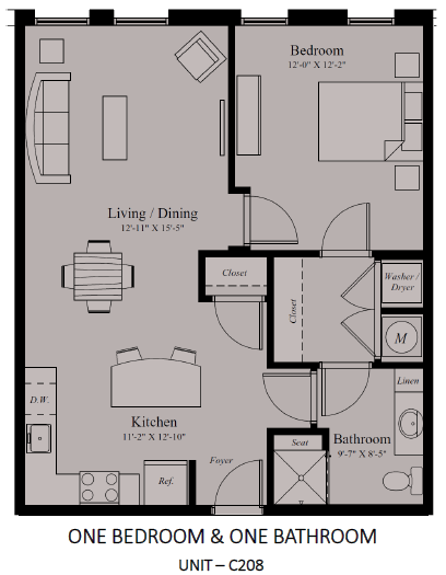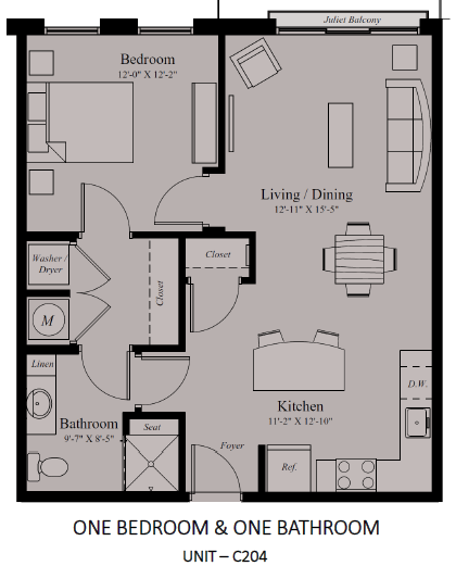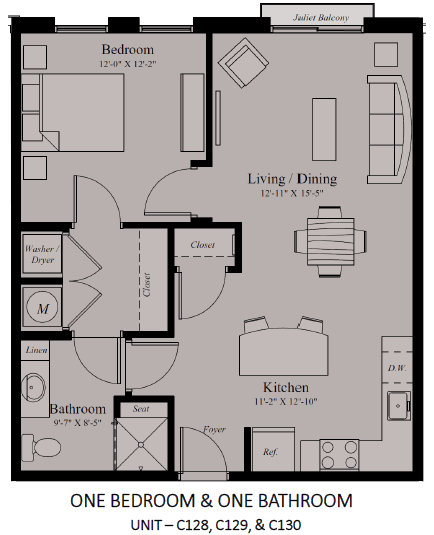 1 Bedroom, 1 Bath - Floorplan 4 ![]()