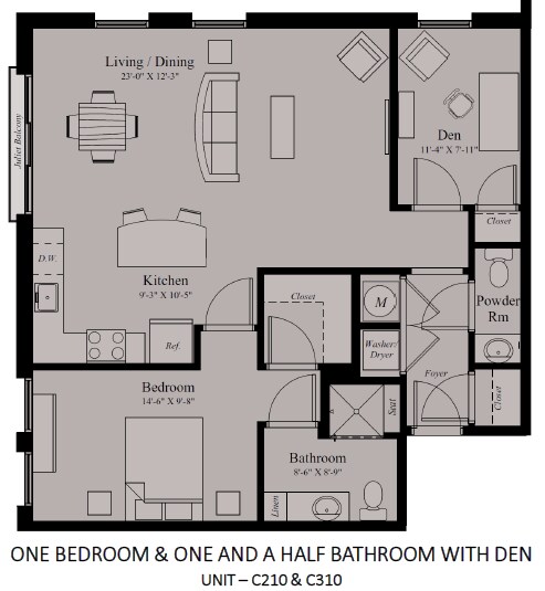 1 BR 1 BA with Den - Floorplan 2 ![]()