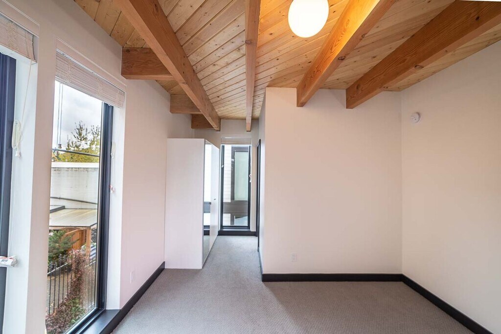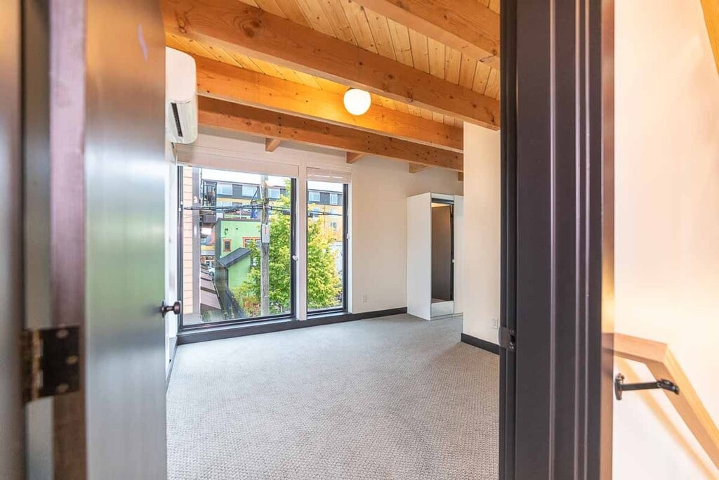 The Village is an innovative, urban coliving community consisting of a 5-bedroom single-family home, and 3 adjacent, modern 7-bedroom buildings. The Village features a variety of sized units with shared and private bathrooms, and some lofts. It has fully furnished common spaces, including 4 kitchens, a dining room, living room and multiple outdoor patios. The dining and living spaces are furnished with co-living in mind, offering ample room & the cutlery and appliances to host a large dinner. The Village offers spectacular natural light from the floor to ceiling windows offered in most units, and multiple outdoor patios and seating nooks allows residents to get some fresh air. Unwind at the end of your day surrounded by your new housemates or pop around the corner to eat, shop, and drink on Mississippi Avenue. This unit is on the 2nd floor and features a private bath, and floor to ceiling windows that wrap around the corner of the unit!