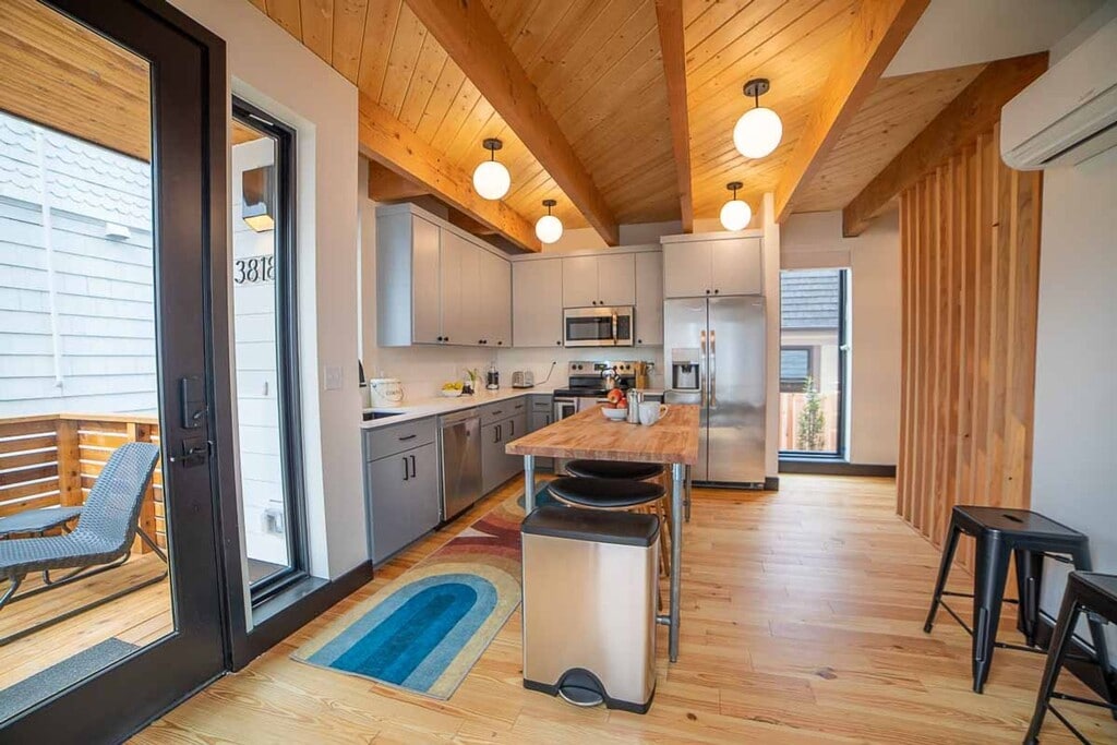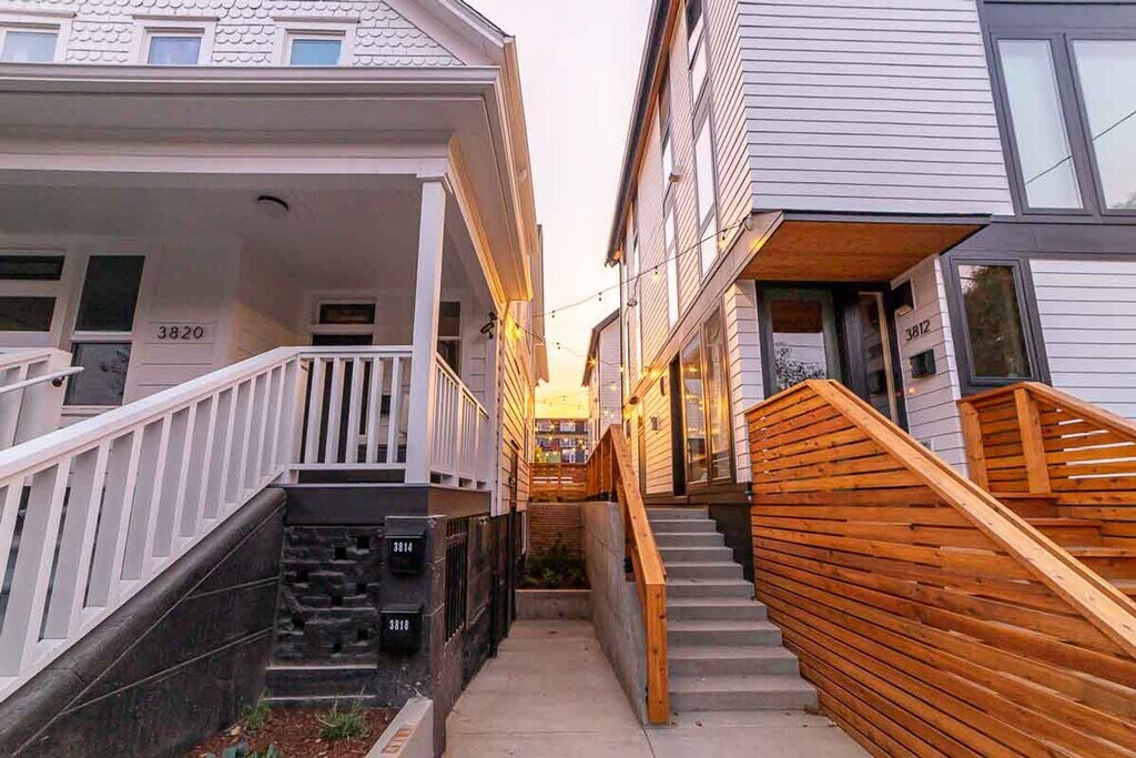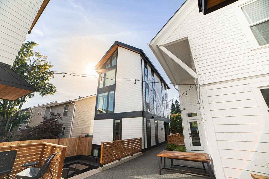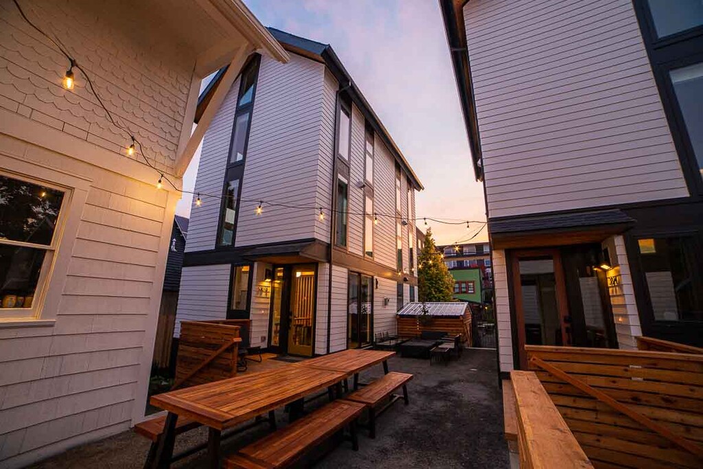 The Village is an innovative, urban coliving community offering single occupancy rooms with carefully designed, shared living spaces! The buildings are comprised of a nicely restored vintage home converted into 5 individual, single-occupancy rooms, and 3 architecturally modern towers, each with 7 single-occupancy rooms. A few of the most affordable vintage rooms share a bathroom with one other tenant, and all of our modern tower rooms have private bathrooms. Six of our select tower rooms have additional loft space. The Village also features fully furnished common areas that everyone shares, including 4 well supplied kitchens, a dining room, living room, and multiple outdoor patios and community gardening areas! The dining and living spaces are furnished with coliving in mind, offering ample room & the cookware, cutlery, dishes and appliances to host a large dinner. Many rooms at The Village offer spectacular natural light through floor to ceiling windows. There are several outdoor patios and seating nooks allowing residents to get some fresh air. Residents can unwind at the end of the day surrounded by community minded housemates, or pop around the corner to eat, shop, and drink on Mississippi Avenue.
