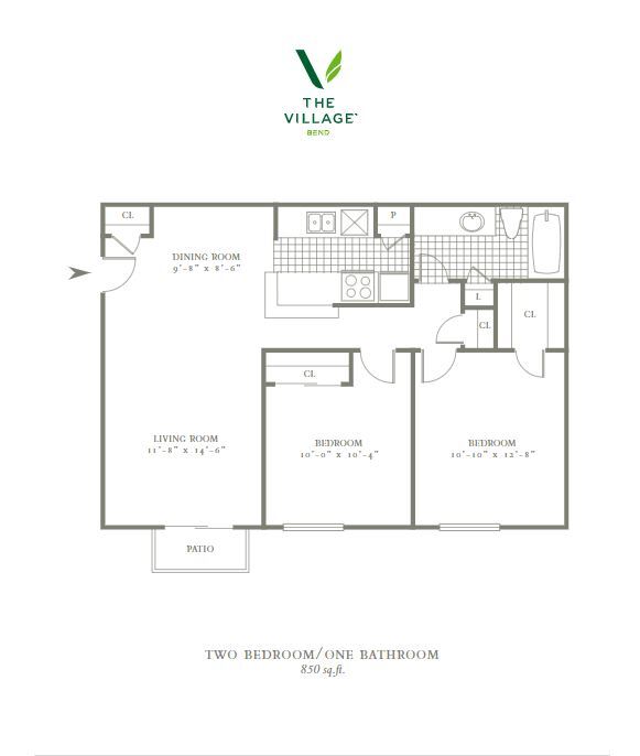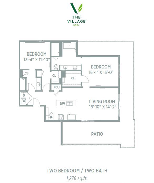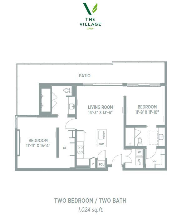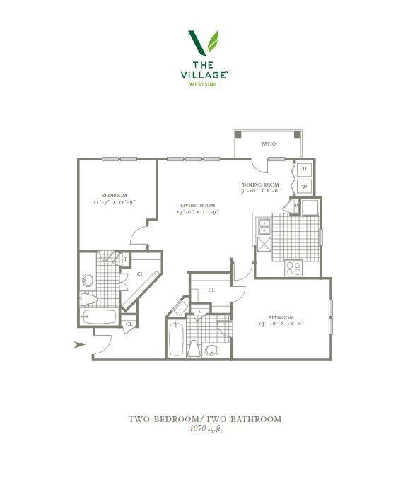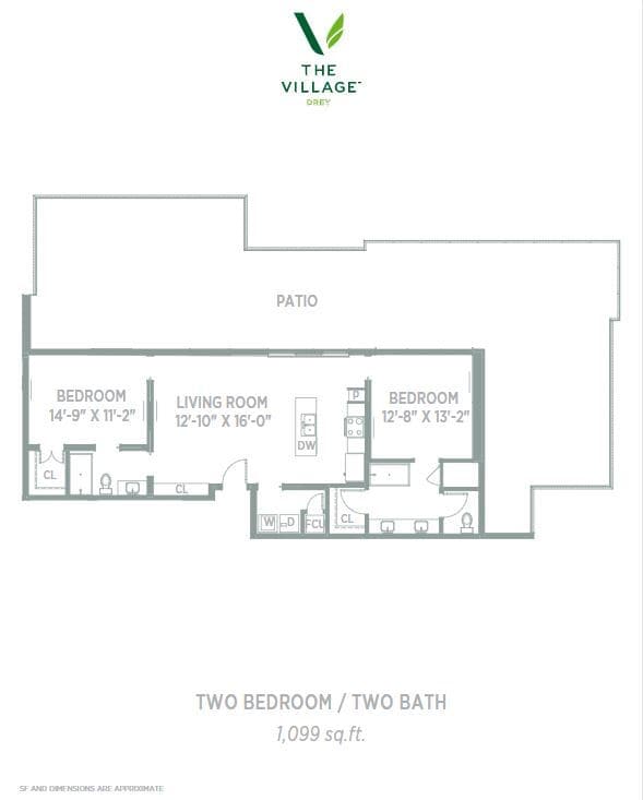 One Bed One Bath - Floorplan 6 2 Bedrooms
