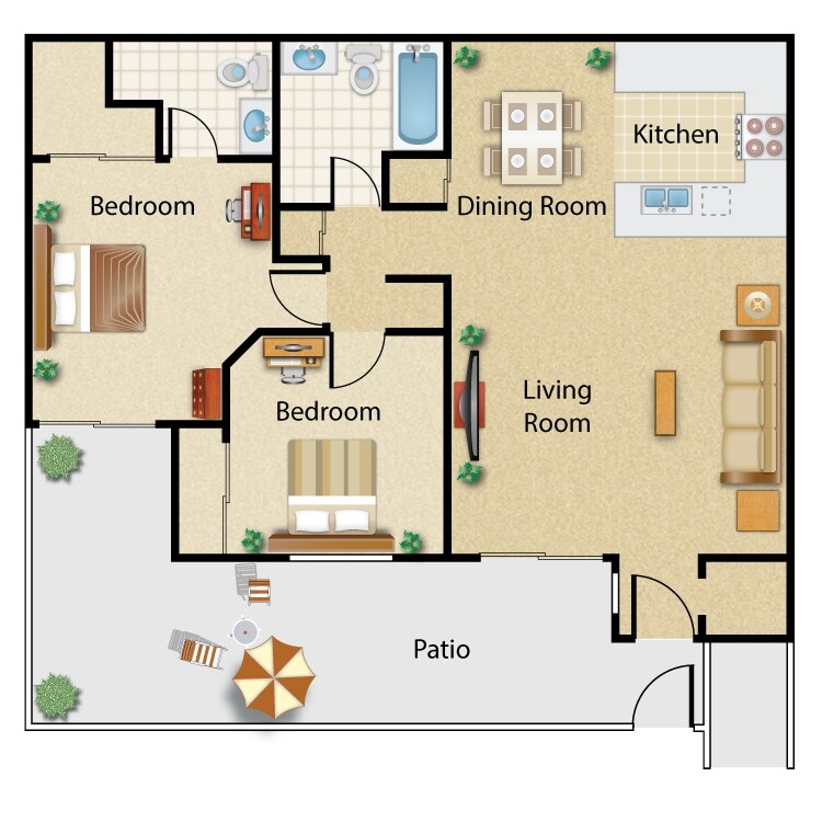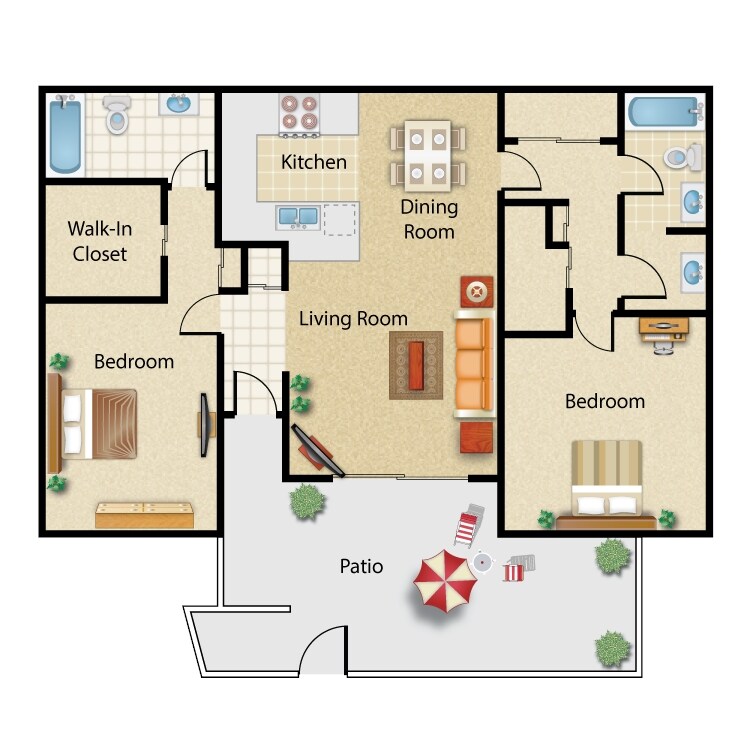 2 Beds, 2 Baths, 832 sq ftAvailable NowModel Gallery