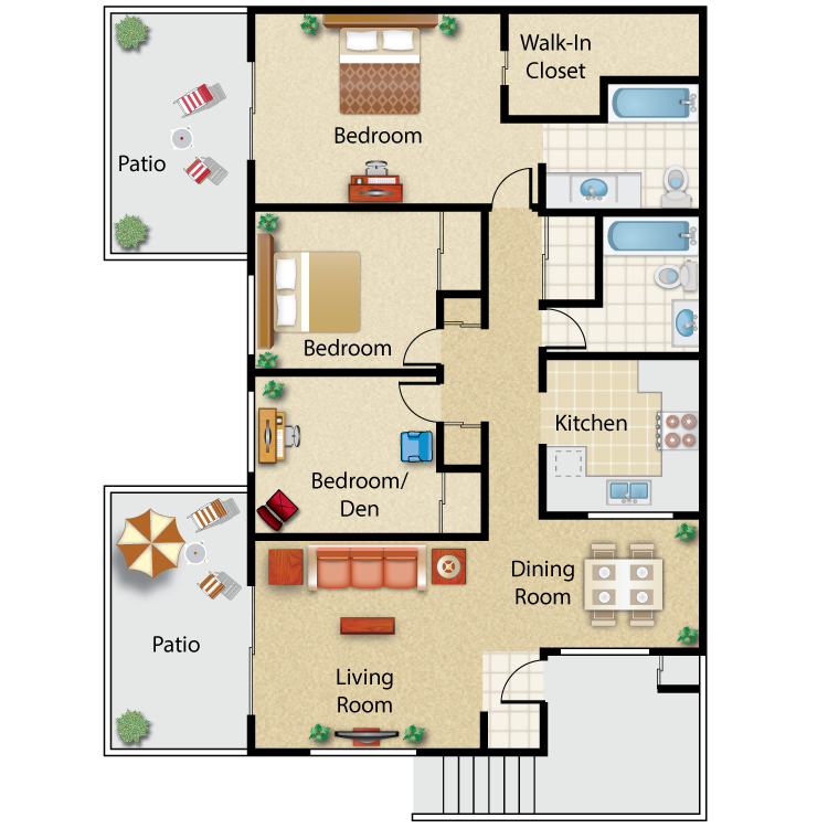 Plan A - Floorplan 1 Apartment Unit: 46-102Apartment Model: Plan AFrom $2,6792 Bedroom, 2 Bath, 793 sq ftAvailable May 1, 20263 Bedrooms