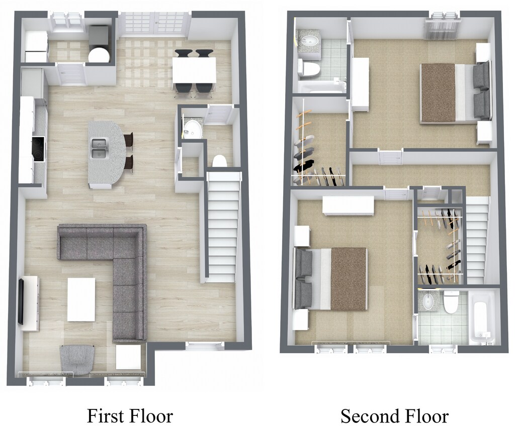 2 Beds, 2.5 Baths, 1192 sq ftModel Gallery