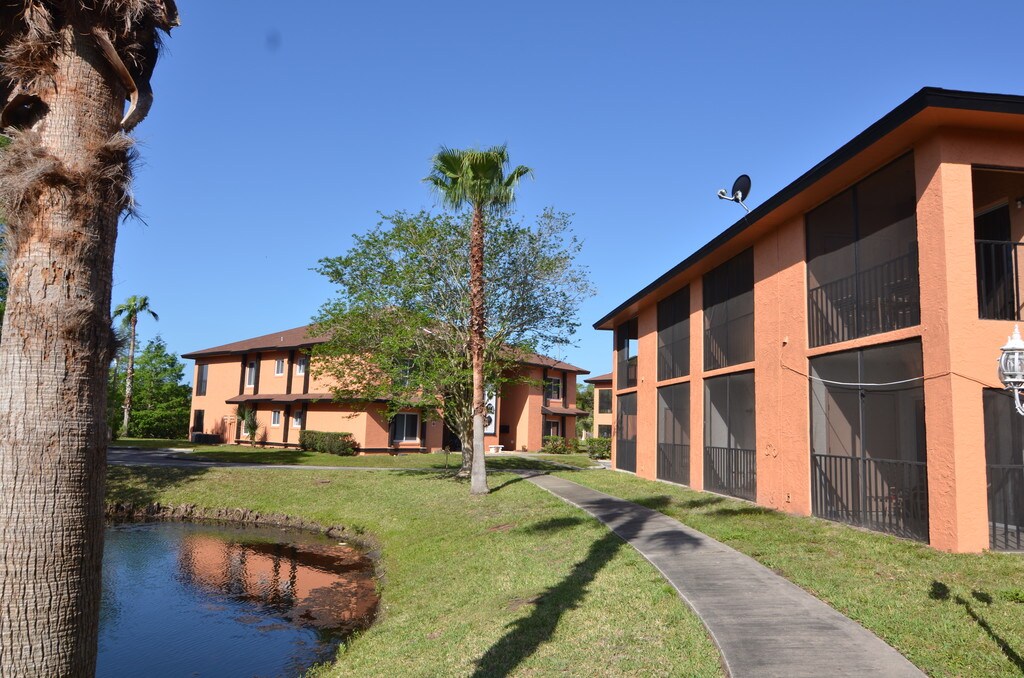Village at Indigo Lake offers studio and one bedroom boutique style apartment homes for rent in Daytona Beach. The rent includes ELECTRIC/WATER/WASTE/PEST CONTROL. Each one bedroom unit has a screened patio/balcony, ceiling fans, large range & stove, microwave & dishwasher, large refrigerator and washer/dryer. Studio apartments do not include a stove or washer/dryer. We are minutes from I-95, I-4, hospitals, beaches, and Daytona International Speedway. Pets 25 lbs. and under allowed in unfurnished units only (subject to availability) with $300 non-refundable pet fee, $25/mo. pet rent per pet (up to 2 pets). Breed restrictions do apply.