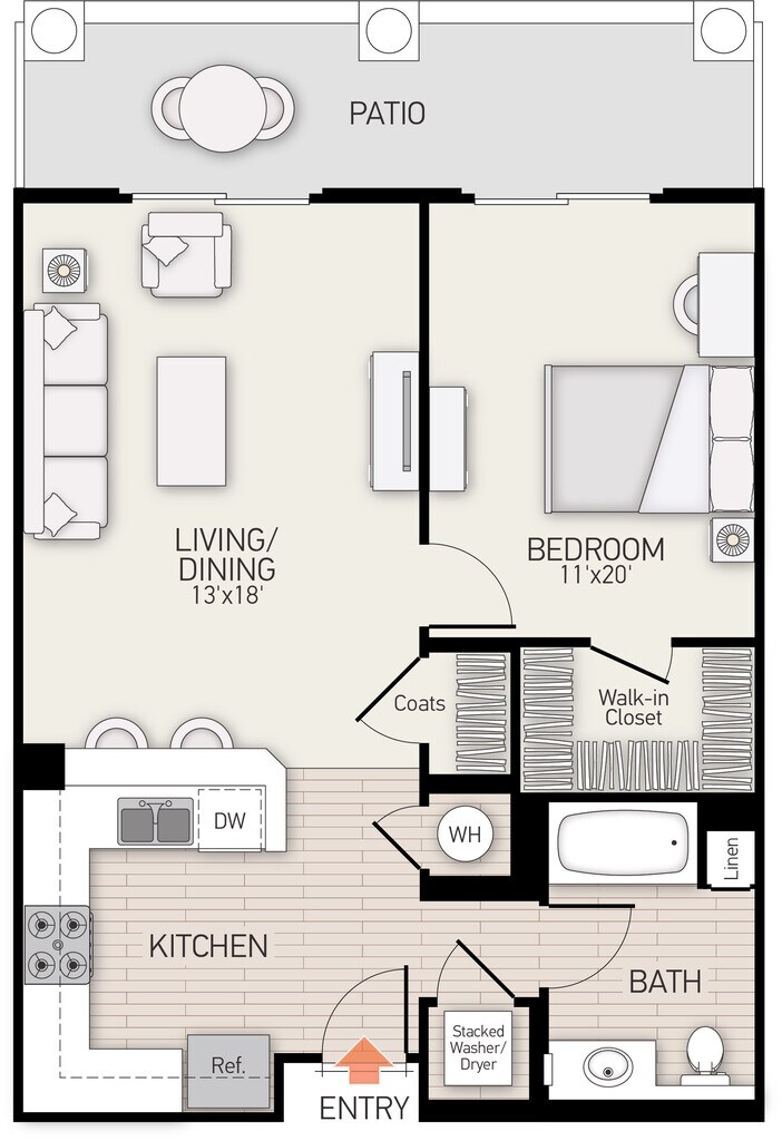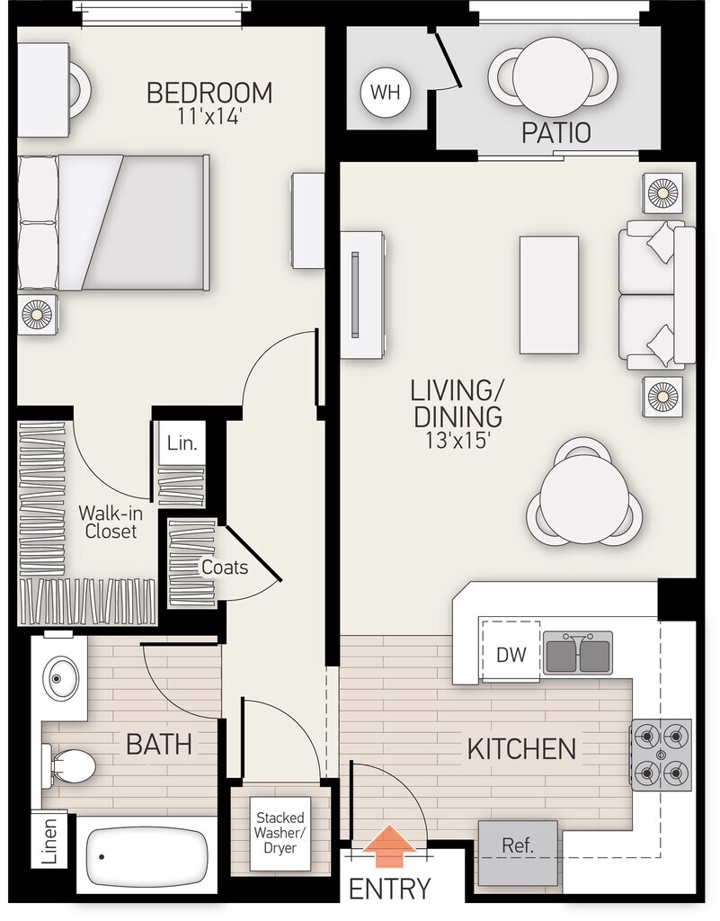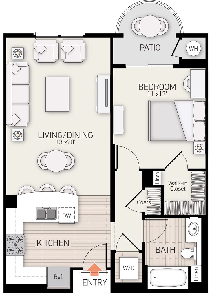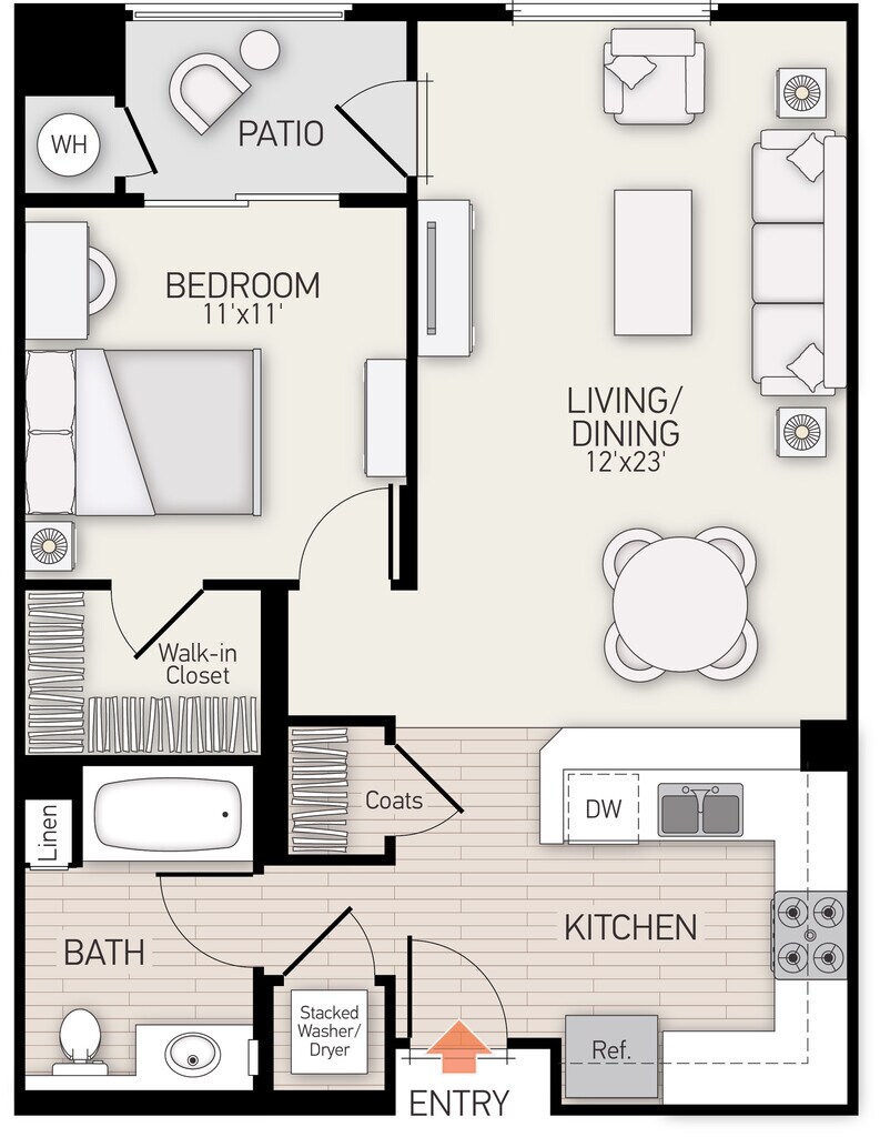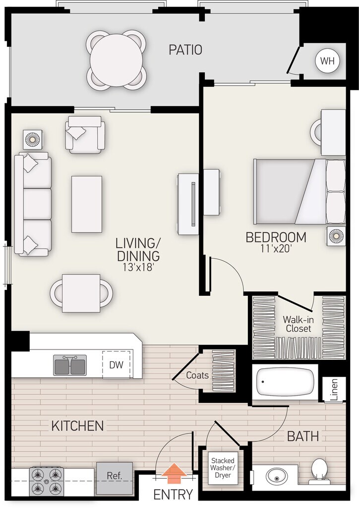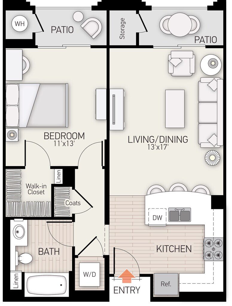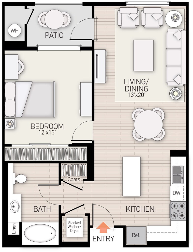 Studio, 1 Bath, 605 sq ftAvailable NowModel Gallery