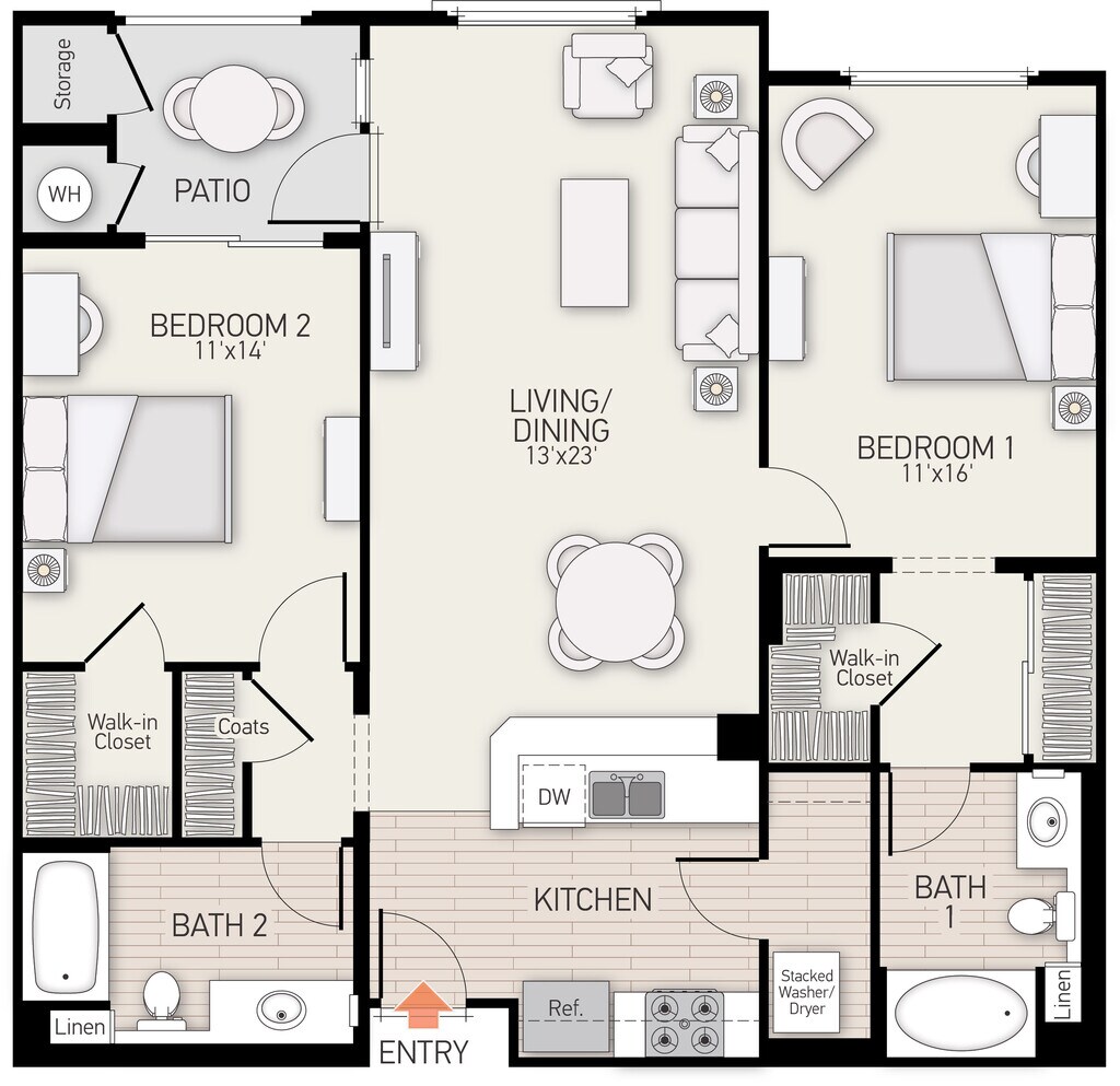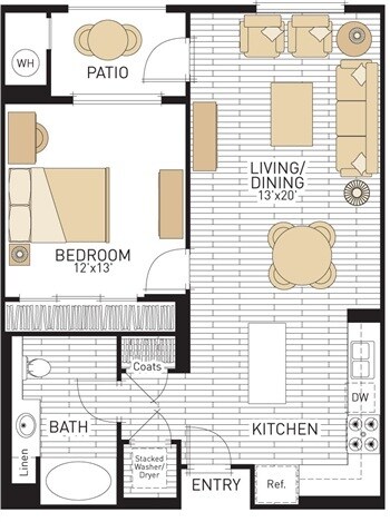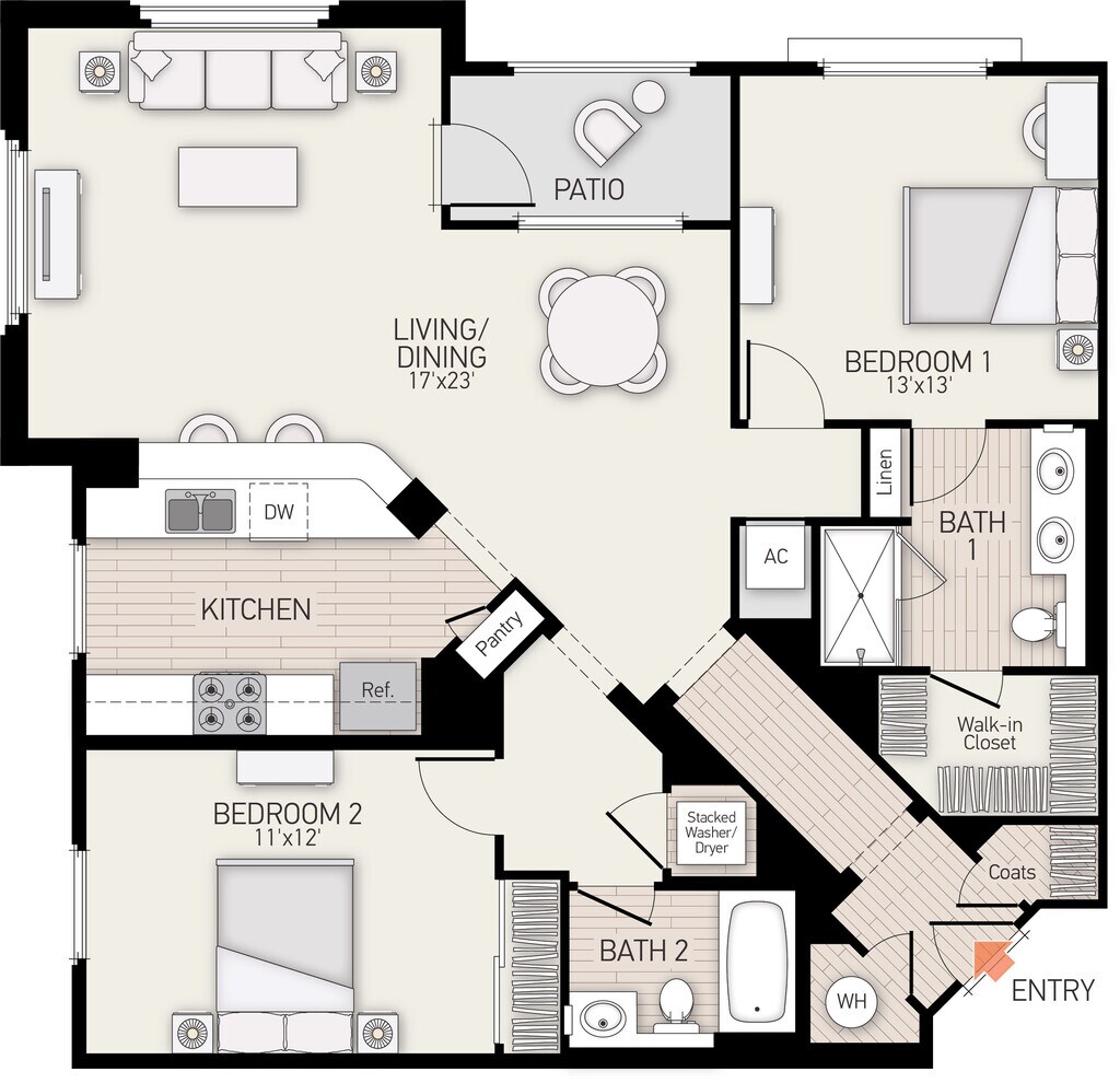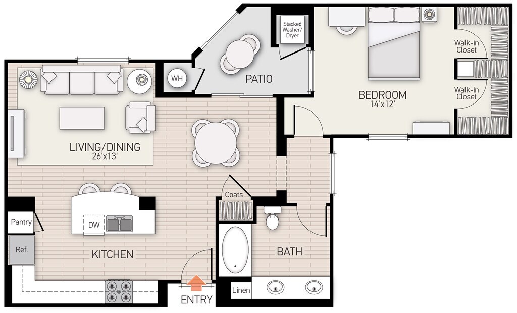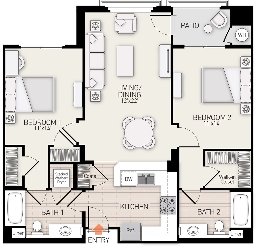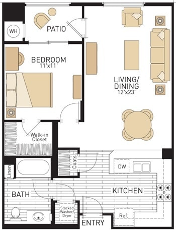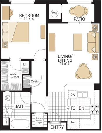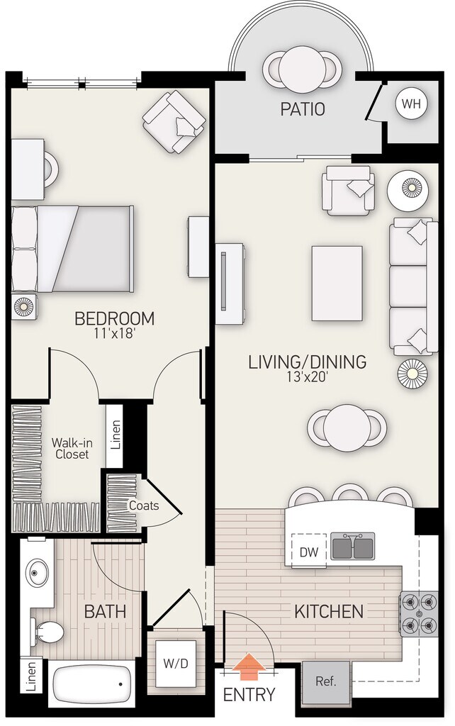 Studio, 1 Bath, 605 sq ftAvailable NowModel Gallery