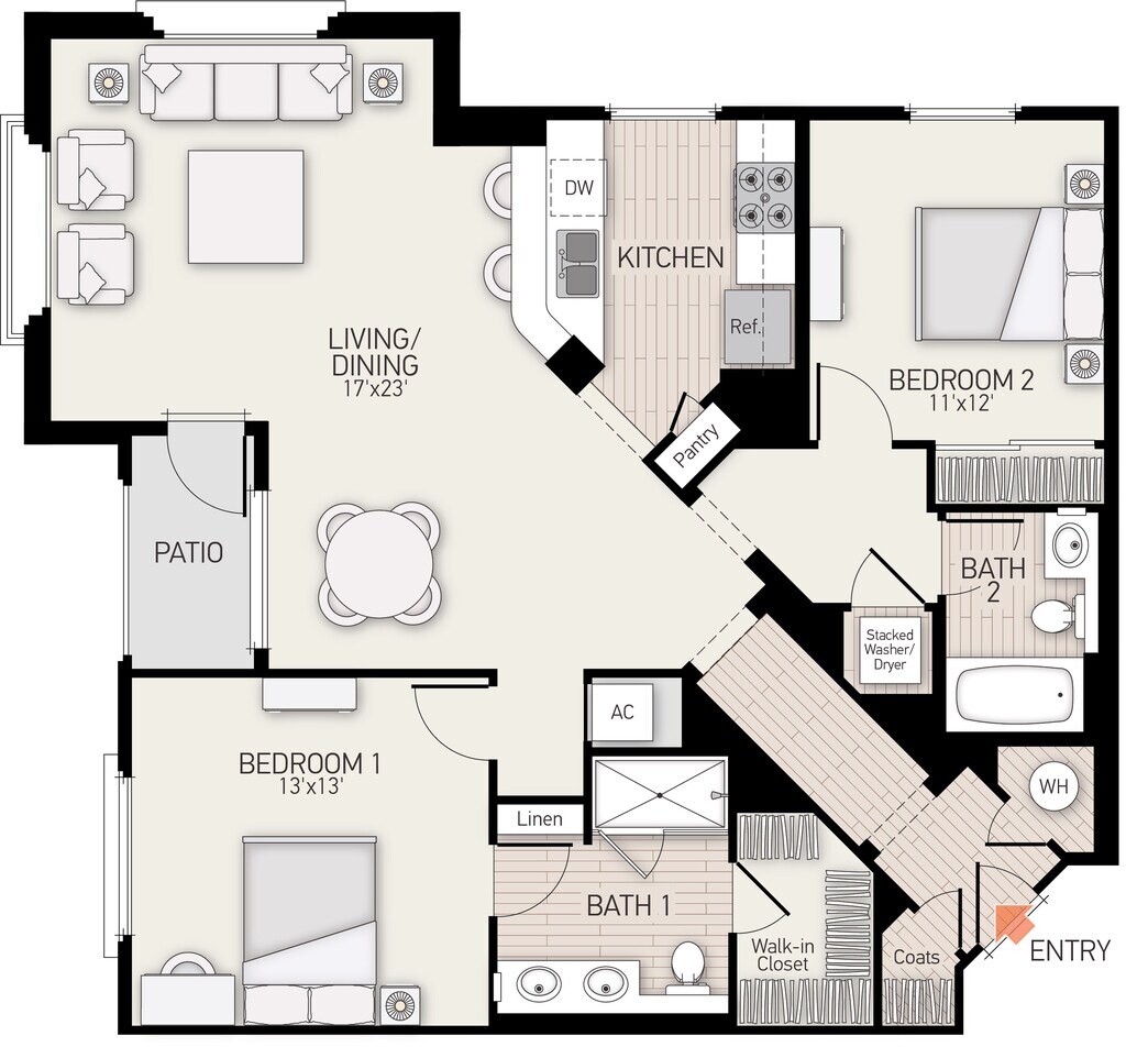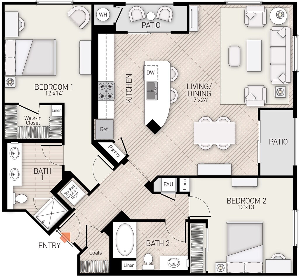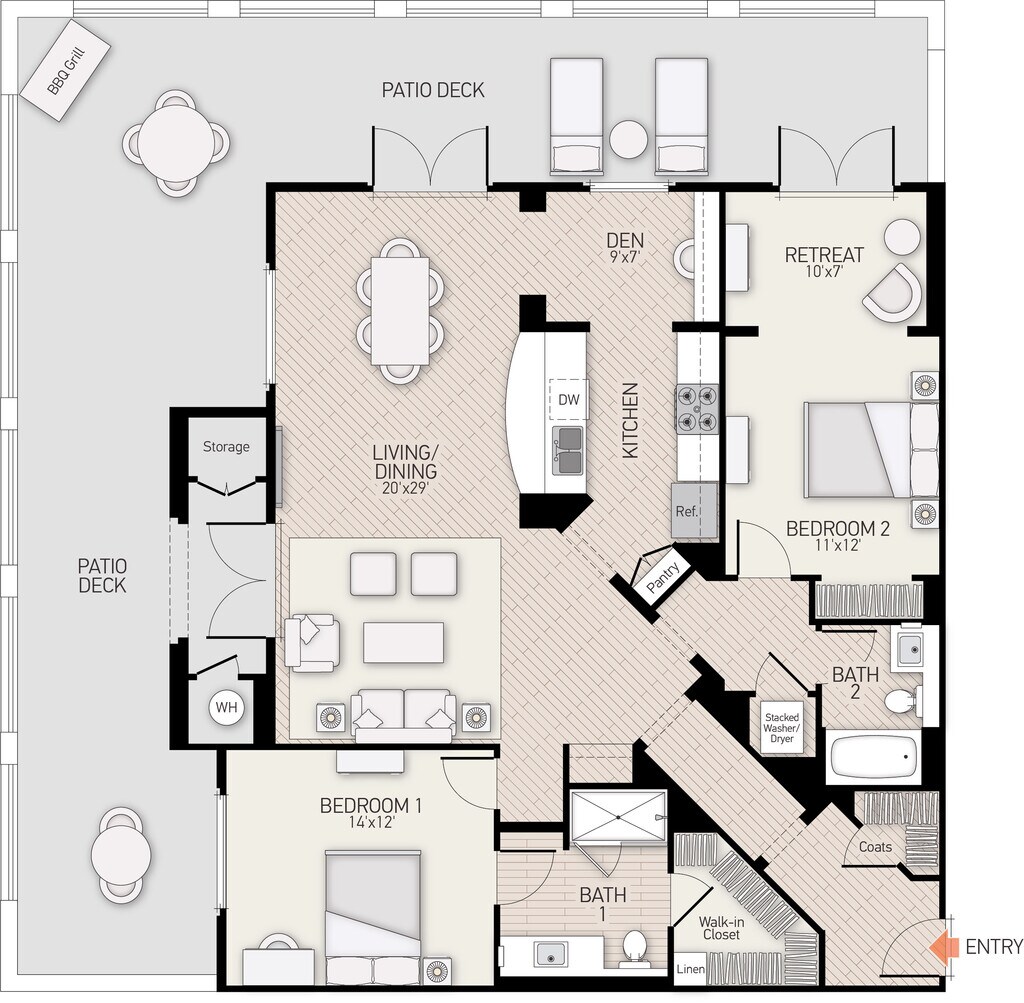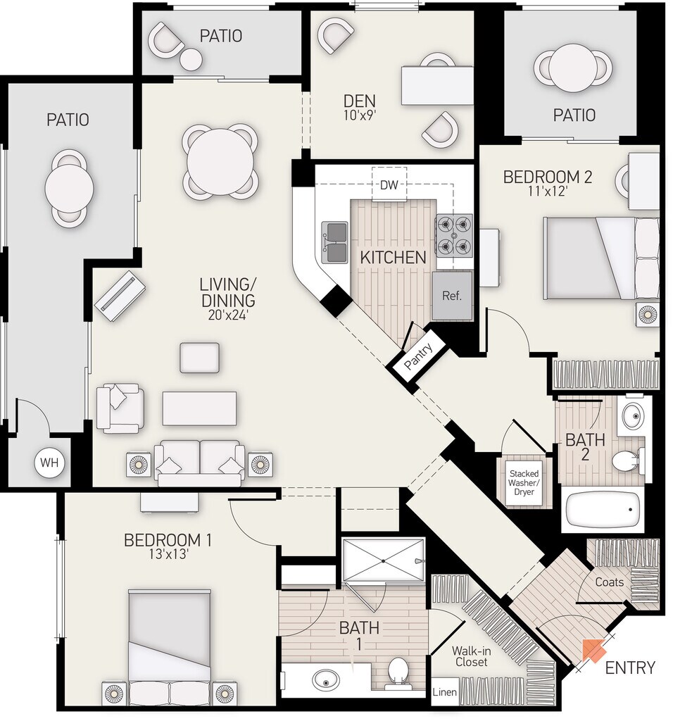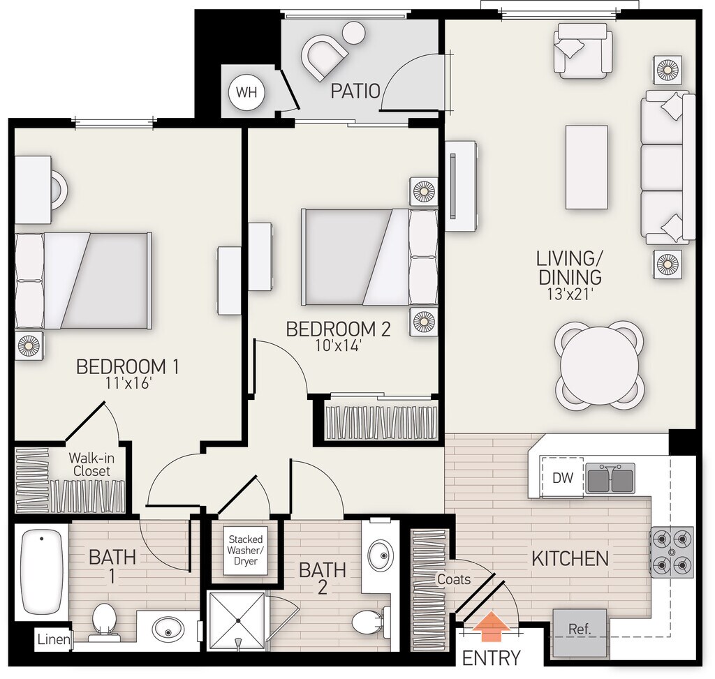 Studio, 1 Bath, 605 sq ftAvailable NowModel Gallery