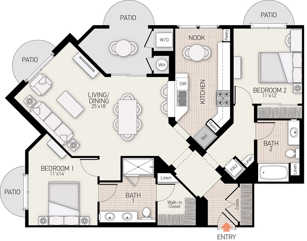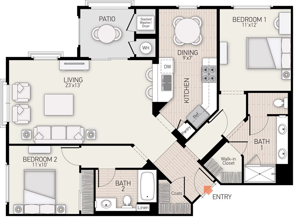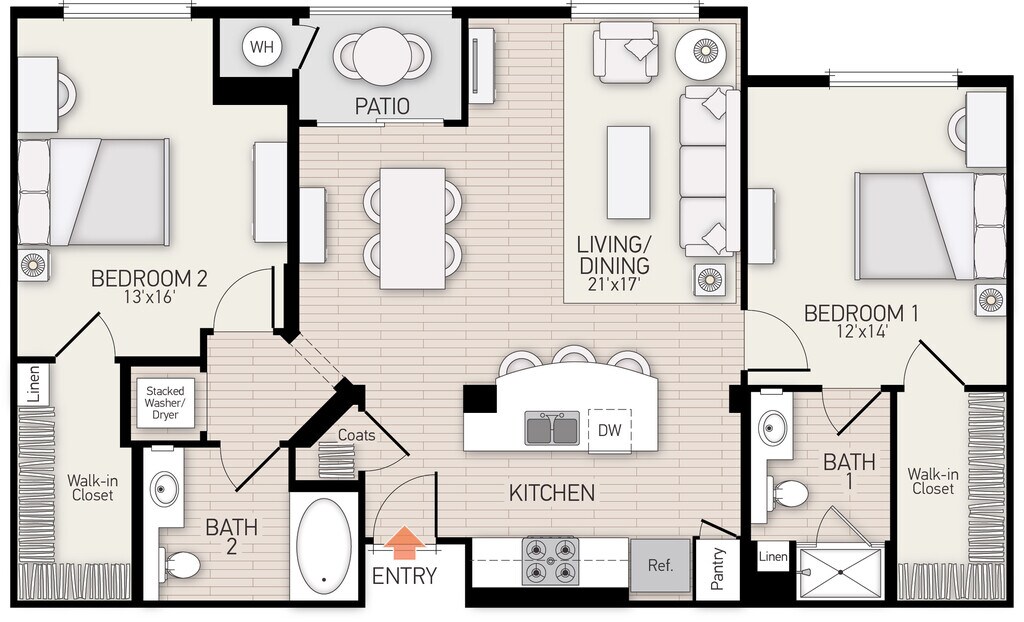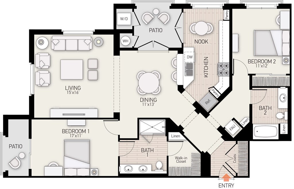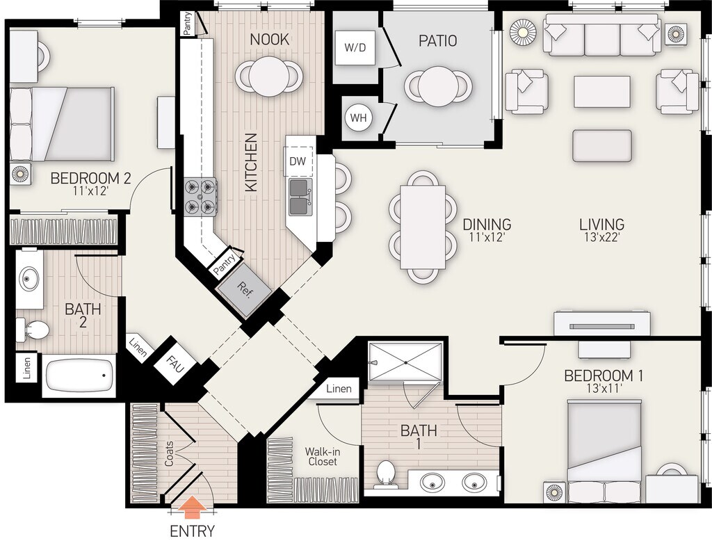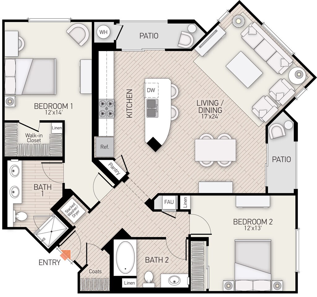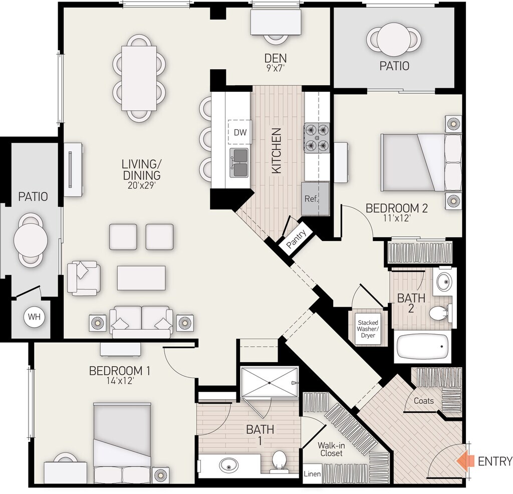 Studio, 1 Bath, 605 sq ftAvailable NowModel Gallery