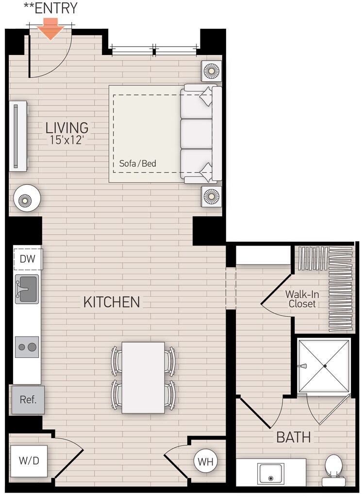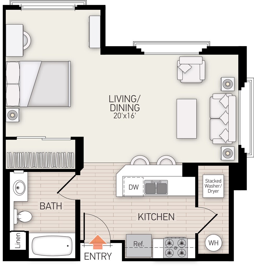 Studio, 1 Bath, 513 sq ftAvailable NowModel Gallery