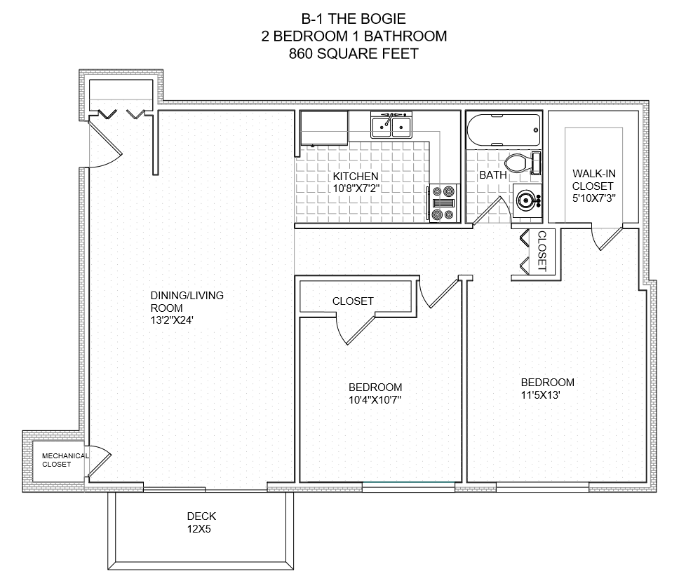 - 2 Bedrooms- The Bogie- From $1,1752 Beds, 1 Bath, 860 sq ftAvailable Dec 2- Model Gallery- Floorplans- Availability Details- Price - Availability Date - Unit - Sq Ft - View Details - $1,175 - December 2, 2025 - 2516B - 860 - $1,175 - December 2, 2025 - 2526B - 860 - $1,175 - December 2, 2025 - 2538L - 860 - Model Amenities and Features- Features- High Speed Internet Access